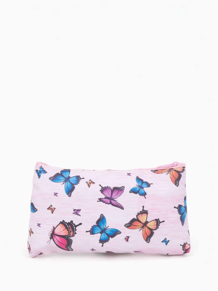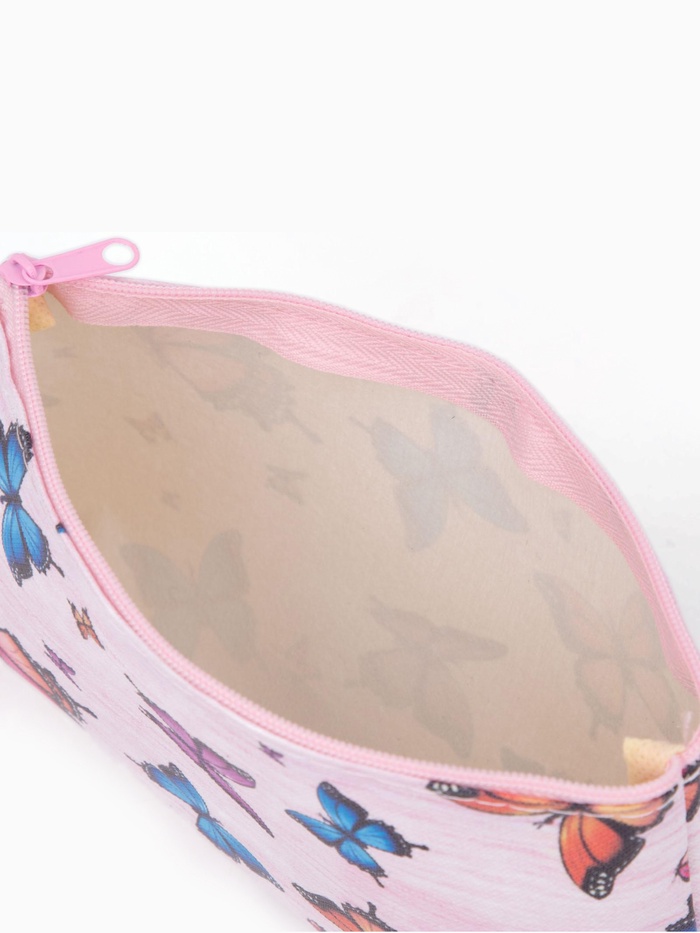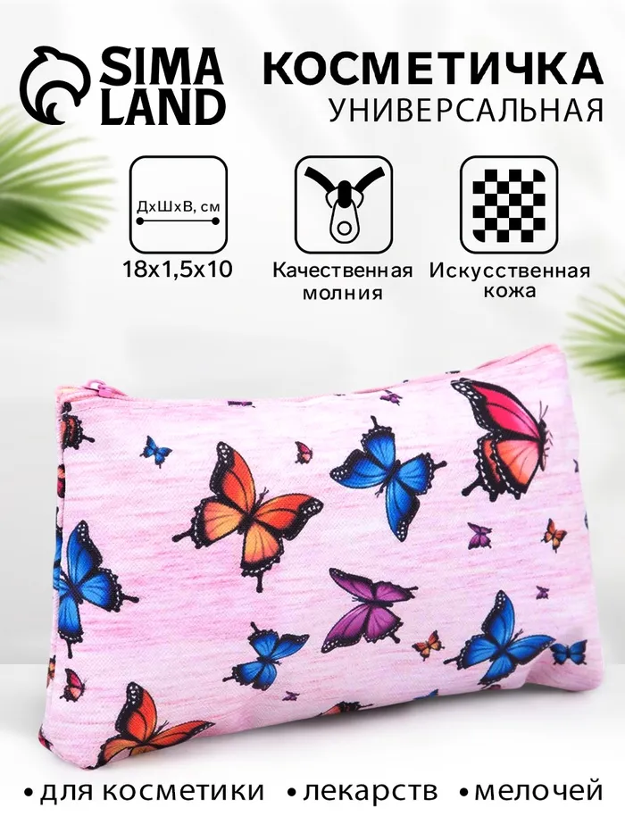 Косметичка-пенал на молнии, плоская, с рисунком «Летние бабочки», розовая — Характеристики