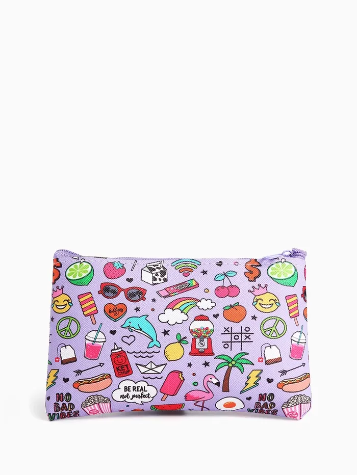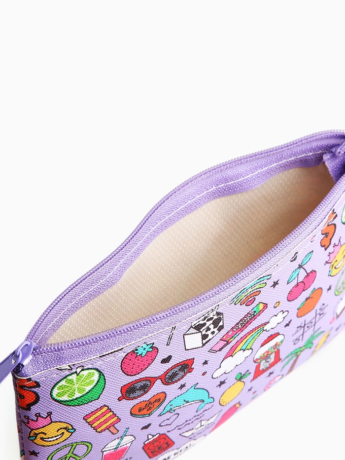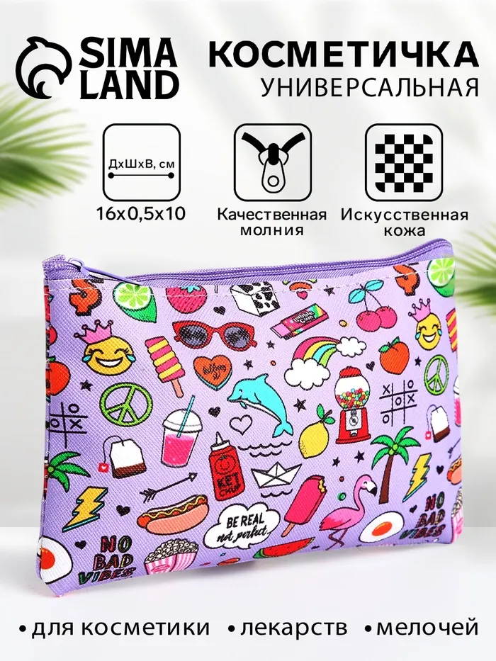 Косметичка-пенал на молнии, плоская, с рисунком «Лето», сиреневая — Характеристики