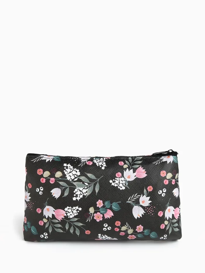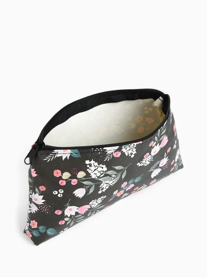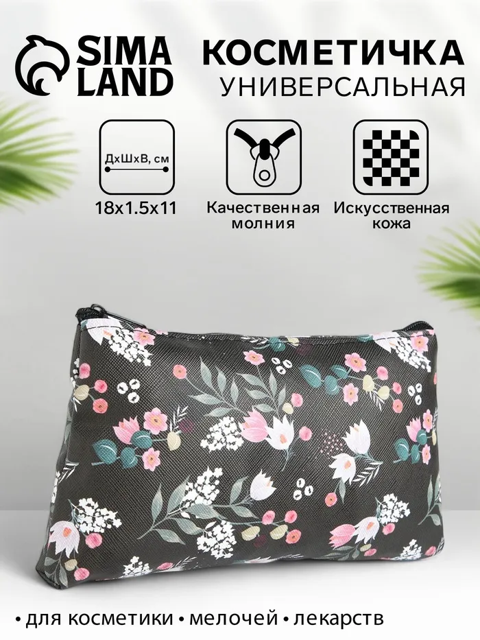 Косметичка-пенал на молнии, плоская, с рисунком «Подснежник», чёрная — Характеристики