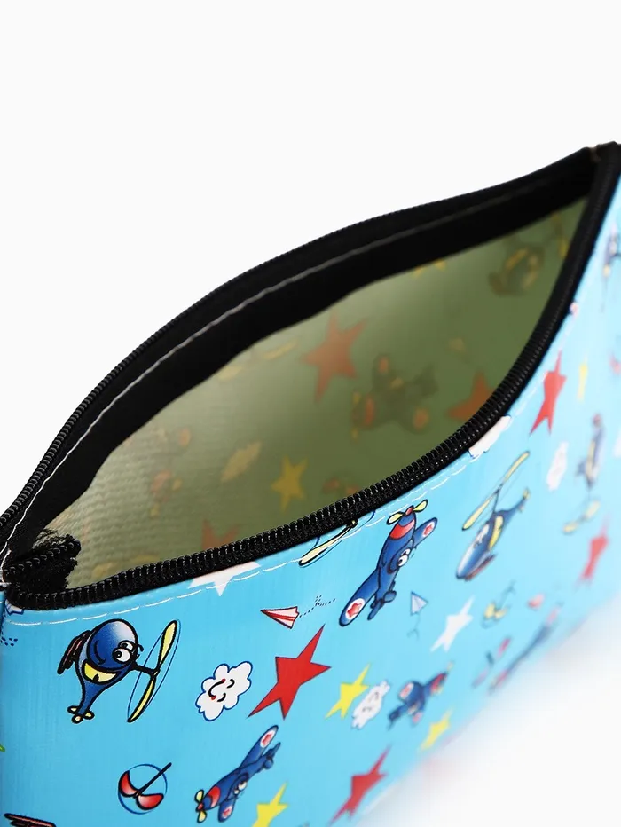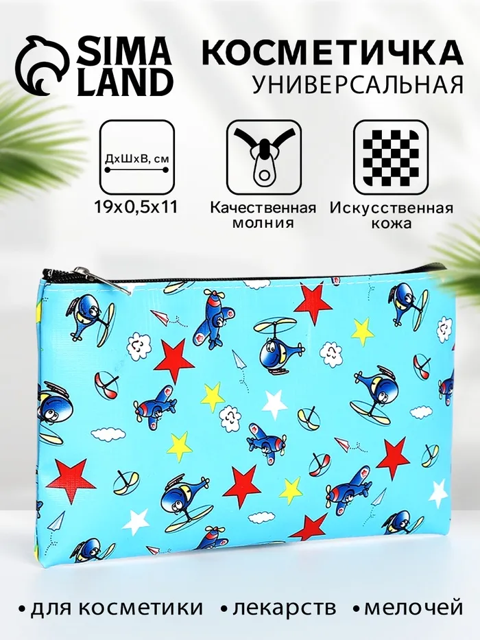 Косметичка-пенал на молнии, плоская, с рисунком «Полёт», голубая — Характеристики