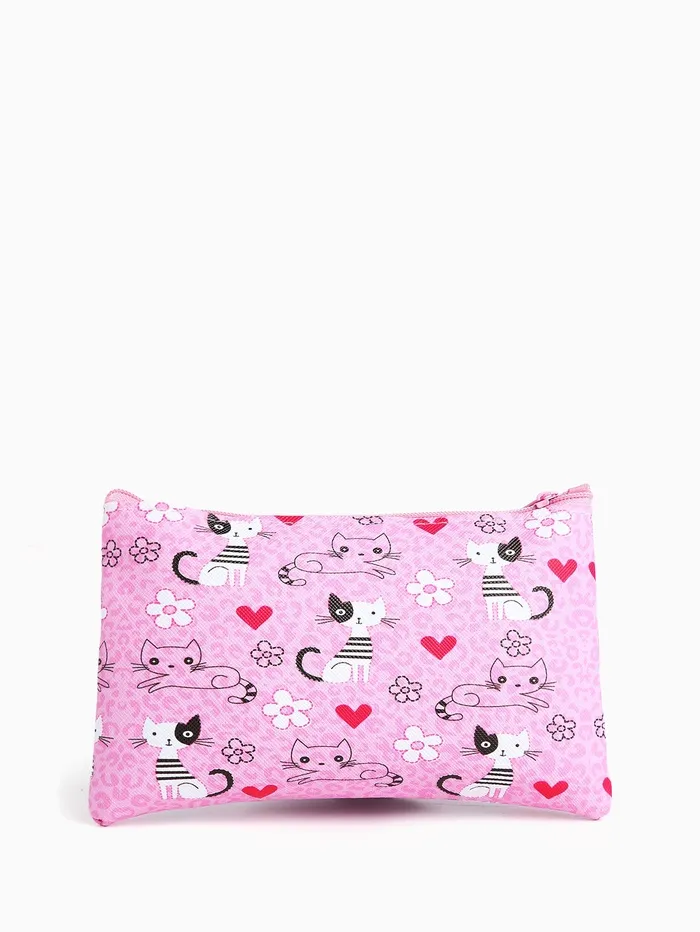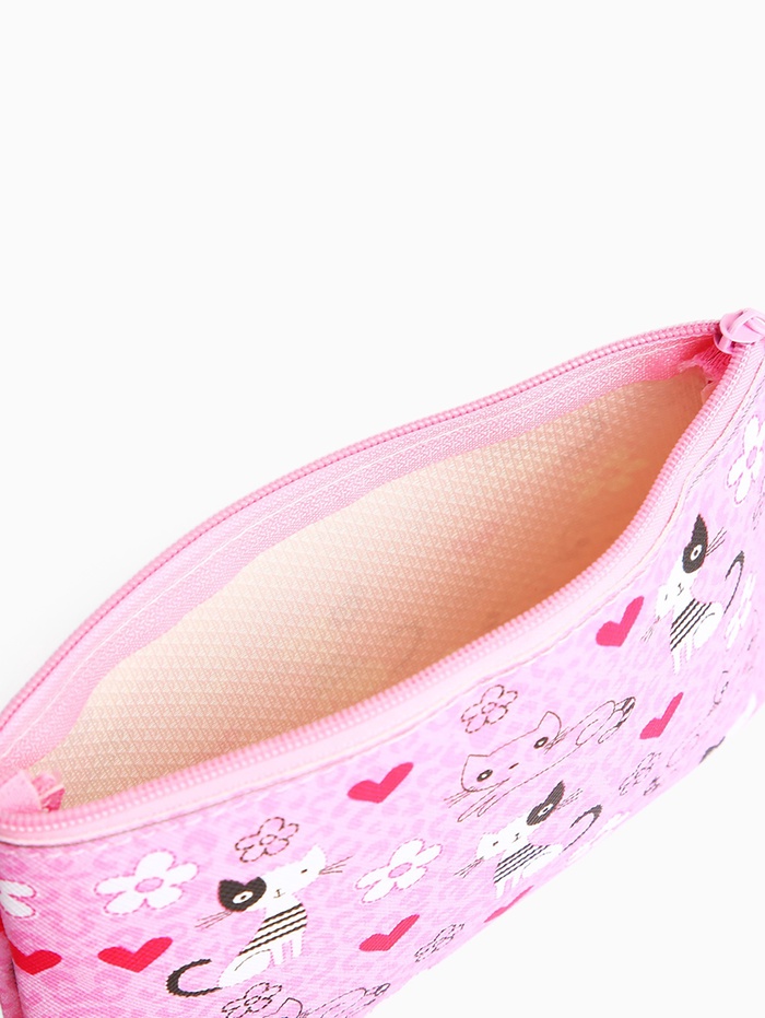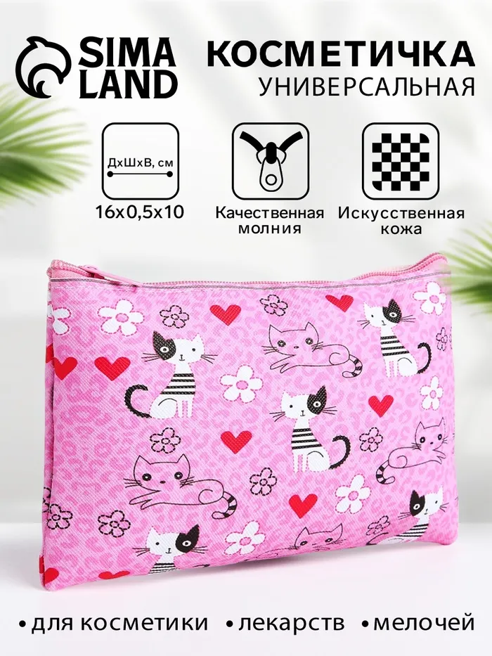 Косметичка-пенал на молнии, плоская, с рисунком «Полосатые коты», розовая — Характеристики