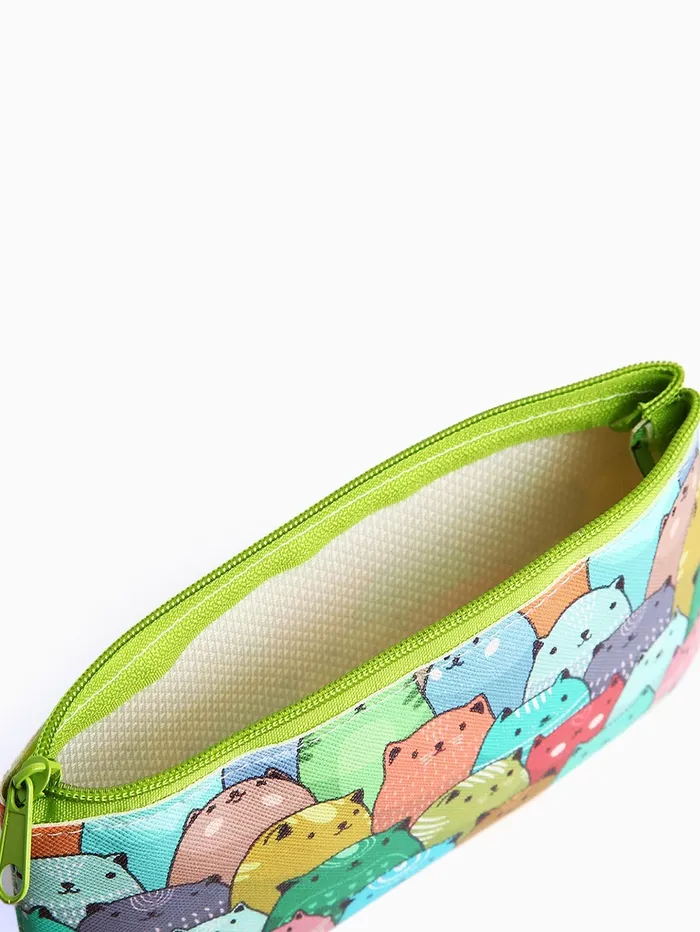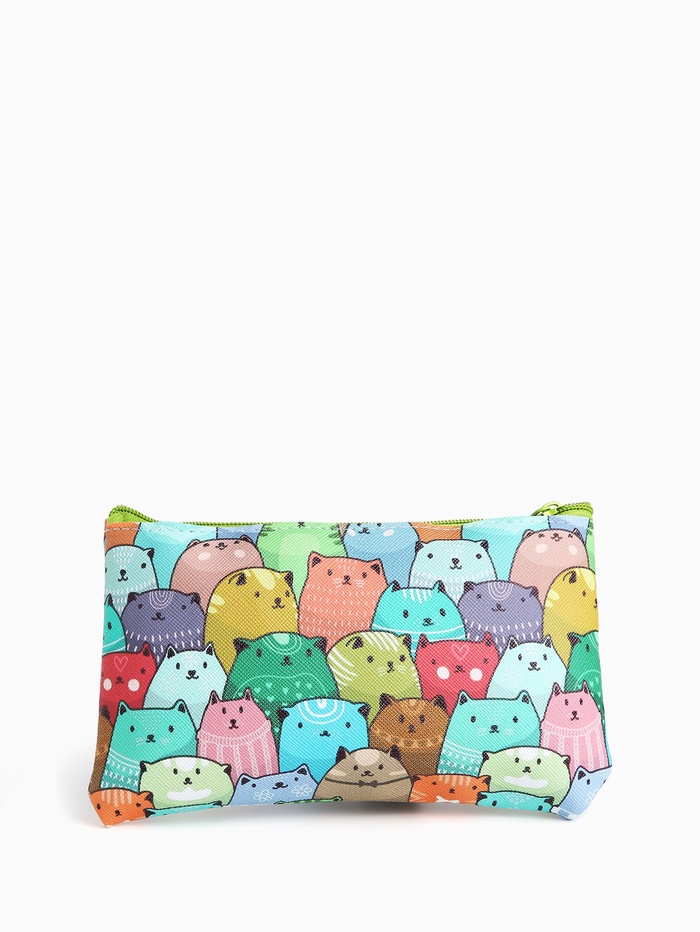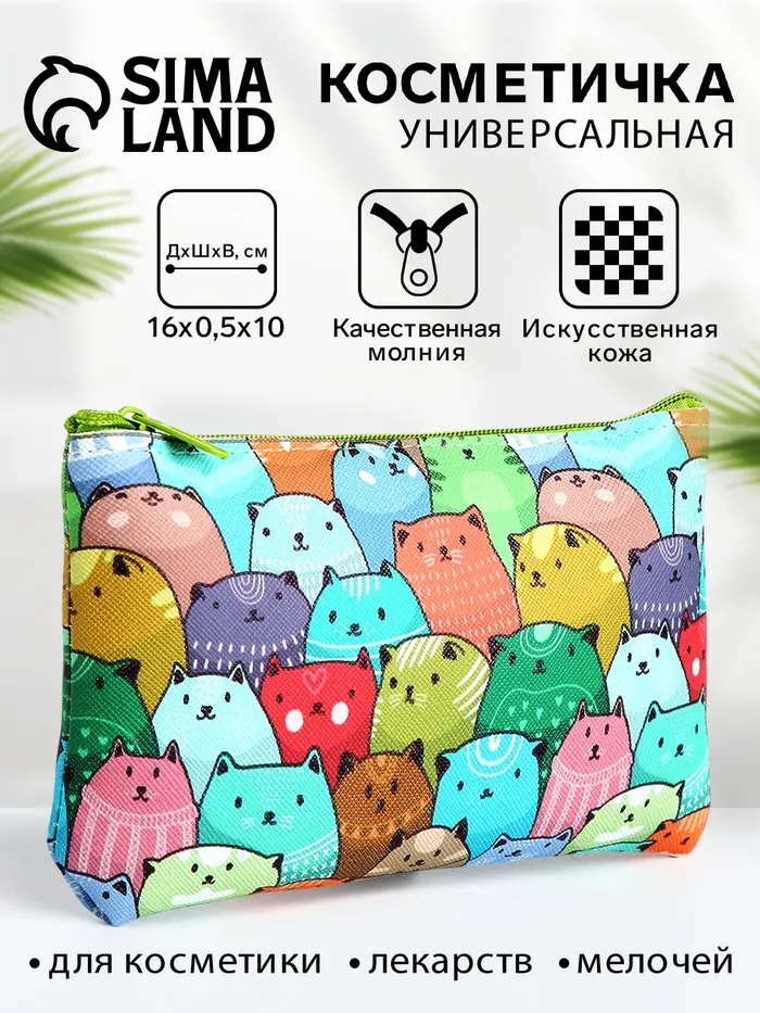 Косметичка-пенал на молнии, плоская, с рисунком «Разноцветные коты», разноцветная — Характеристики