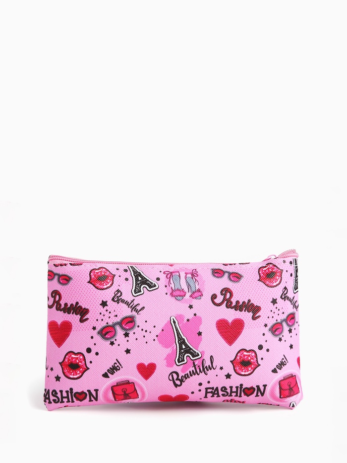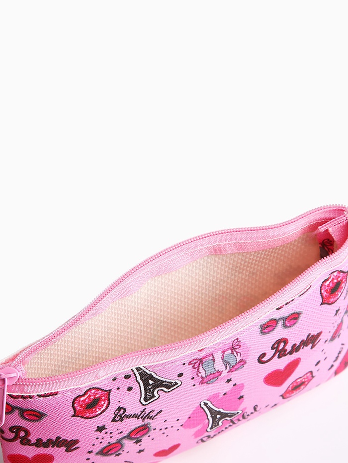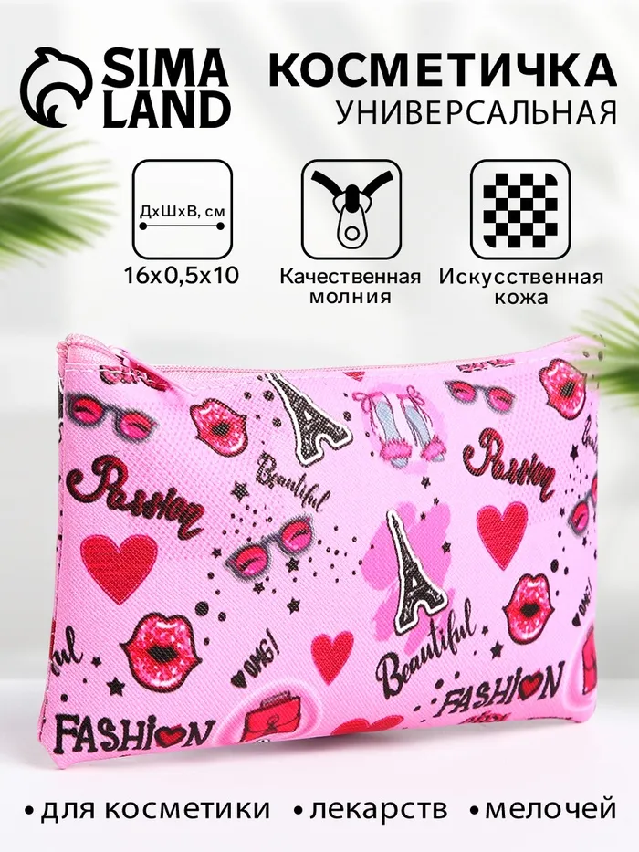 Косметичка-пенал на молнии, плоская, с рисунком «Романтика Парижа», розовая — Характеристики