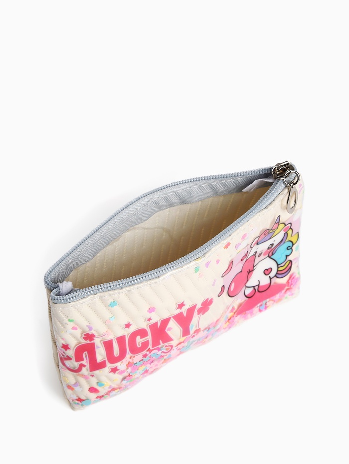 Косметичка-пенал на молнии, плоская, с рисунком «Влюблённый единорог», бежевая — Характеристики