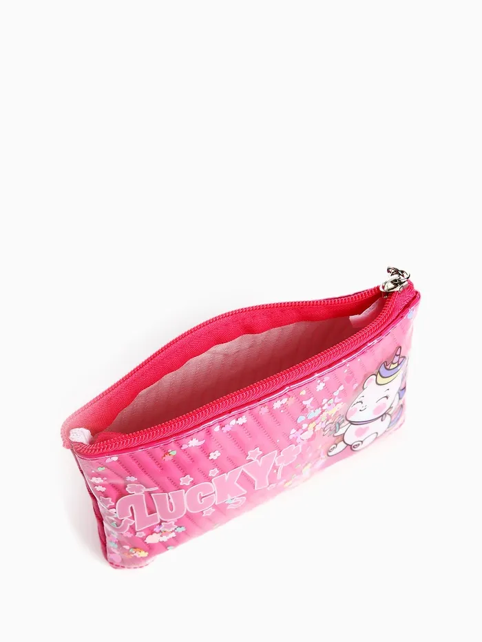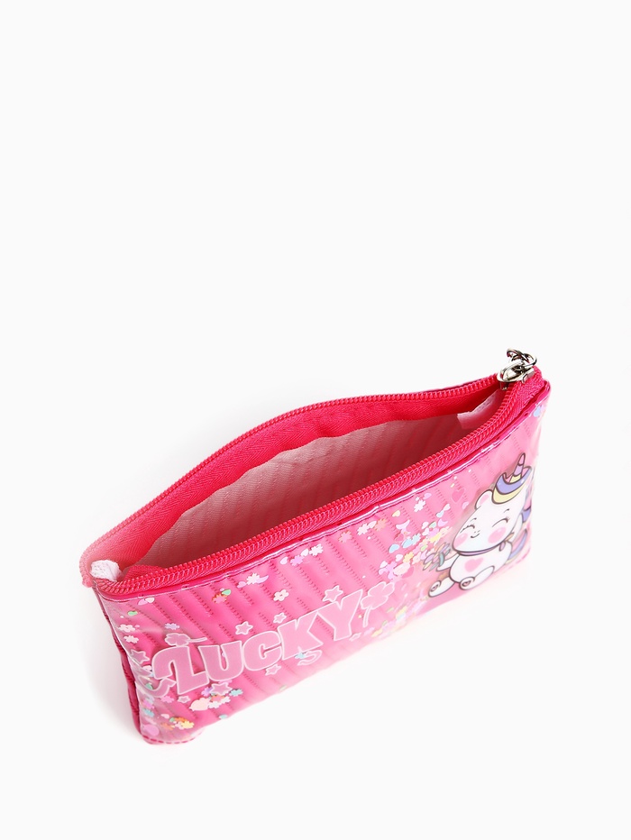 Косметичка-пенал на молнии, плоская, с рисунком «Влюблённый единорог», малиновая — Характеристики
