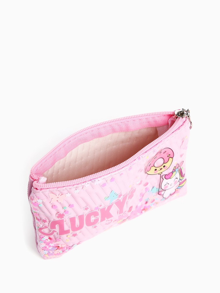 Косметичка-пенал на молнии, плоская, с рисунком «Влюблённый единорог», розовая — Характеристики