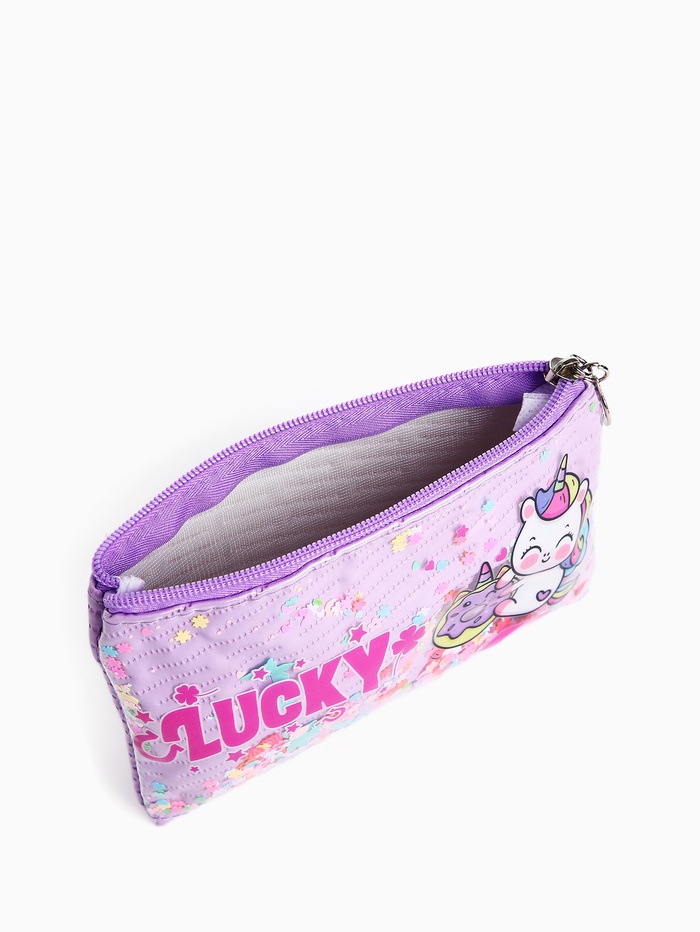 Косметичка-пенал на молнии, плоская, с рисунком «Влюблённый единорог», сиреневая — Характеристики