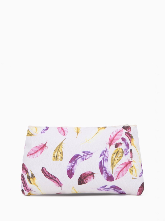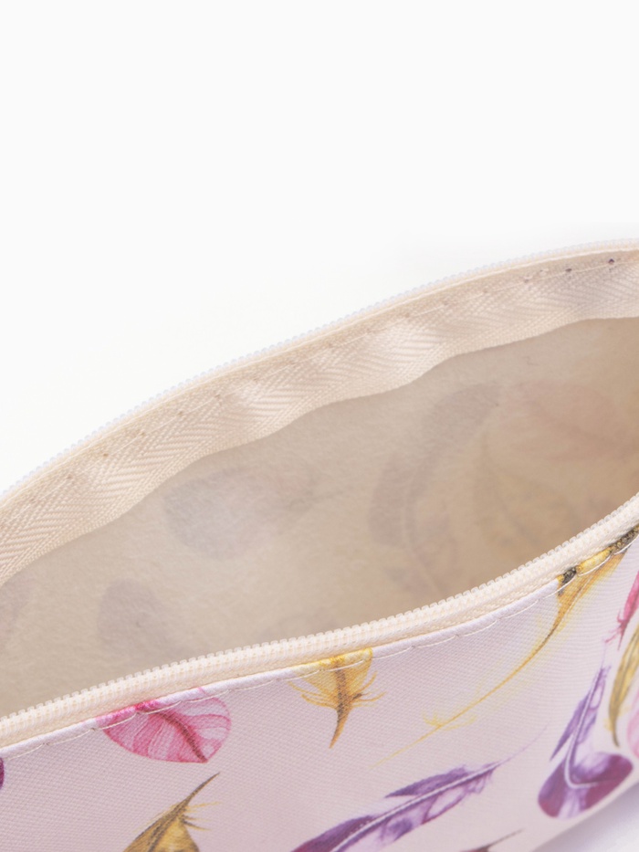 Косметичка - пенал на молнии, простая, маленькая, с рисунком «Перья», бежевая — Характеристики
