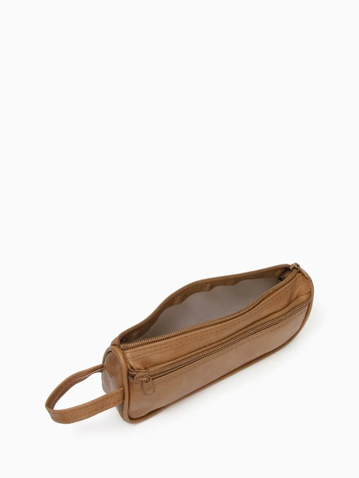 Косметичка-пенал на молнии с карманом, из искусственная кожи, бежевая — Характеристики
