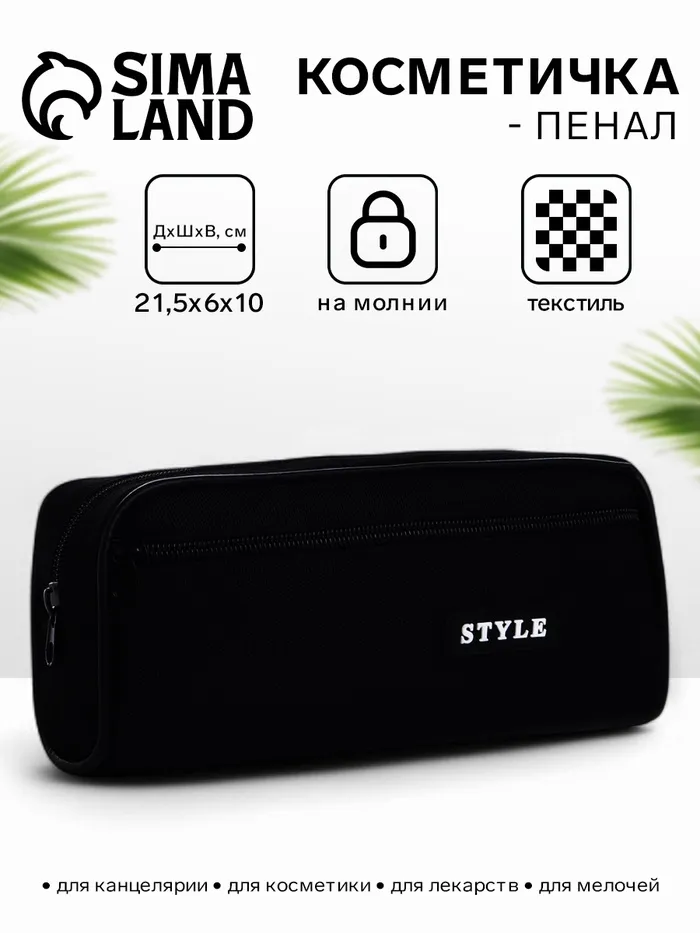 Косметичка-пенал на молнии с карманом, Style, чёрный — Характеристики