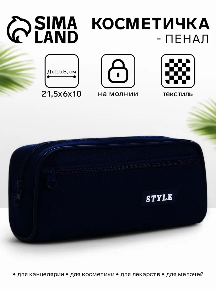 Косметичка-пенал на молнии с карманом, Style, синий — Характеристики