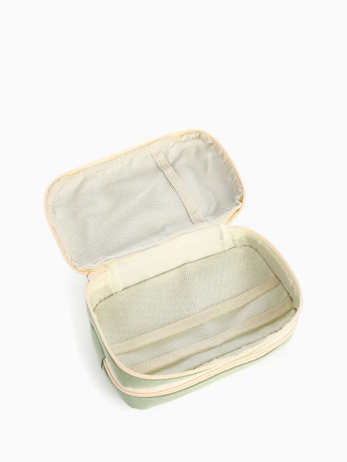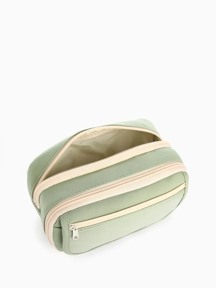 Косметичка-пенал на молнии с отделами, с прозрачным карманом, зелёная — Характеристики