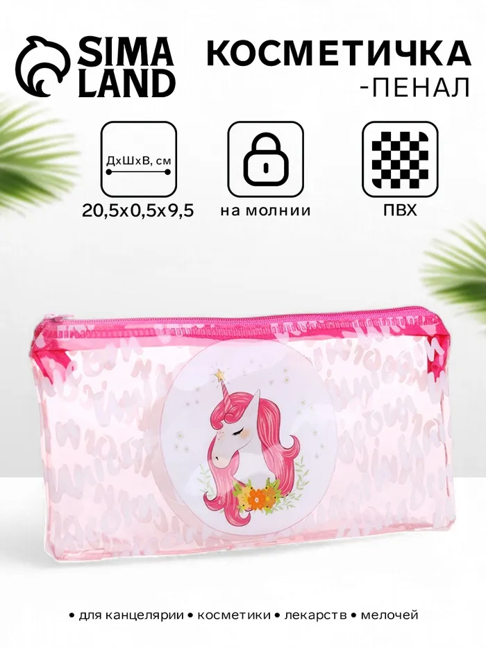 Косметичка-пенал на молнии, с рисунком «Единорог», розовая — Характеристики