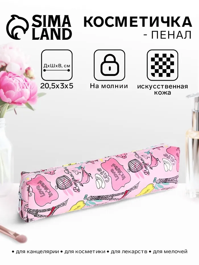 Косметичка-пенал на молнии, с рисунком «Французские каникулы», розовая — Характеристики