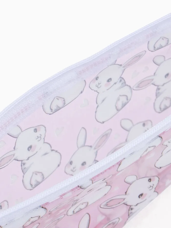 Косметичка-пенал на молнии, с рисунком, прозрачная/розовая — Характеристики