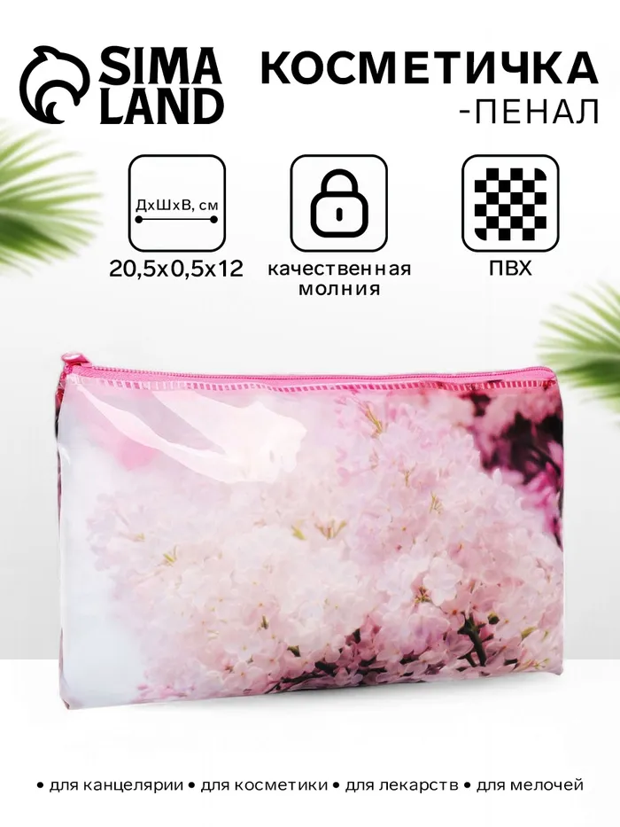 Косметичка-пенал на молнии, с рисунком «Сирень», розовая — Характеристики