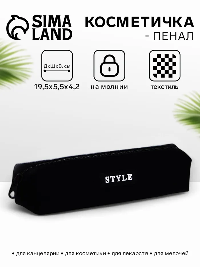Косметичка-пенал на молнии Style, чёрная — Характеристики