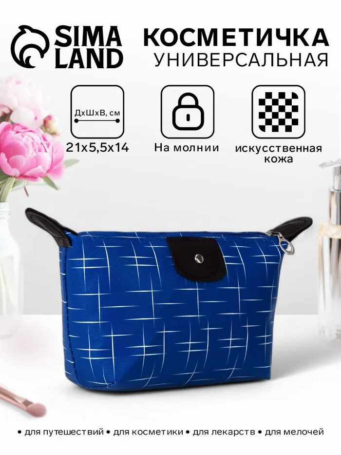 Косметичка простая на молнии, с принтом «Мерцание», синяя — Характеристики