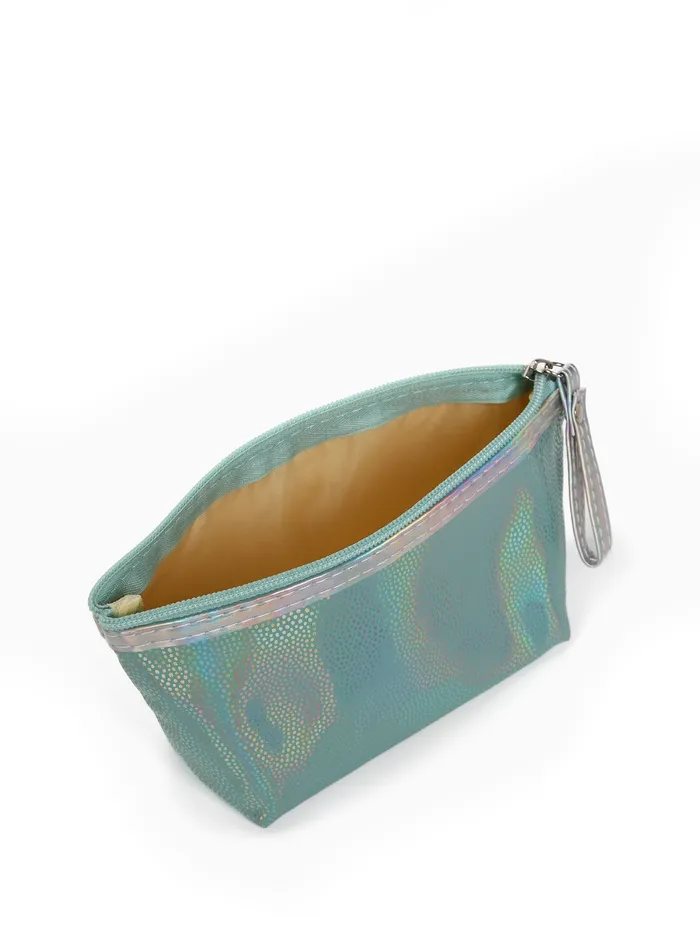 Косметичка простая на молнии, с ручкой, подкладом, голографическая, зелёная — Характеристики