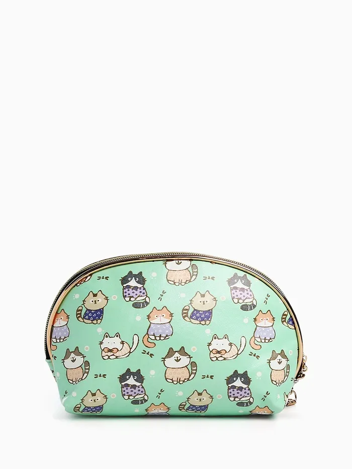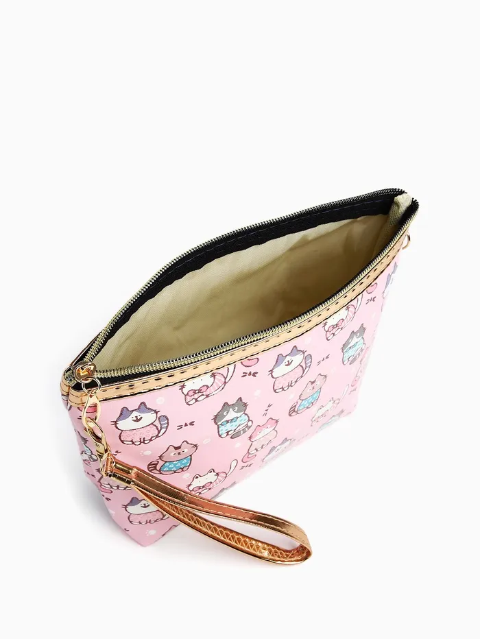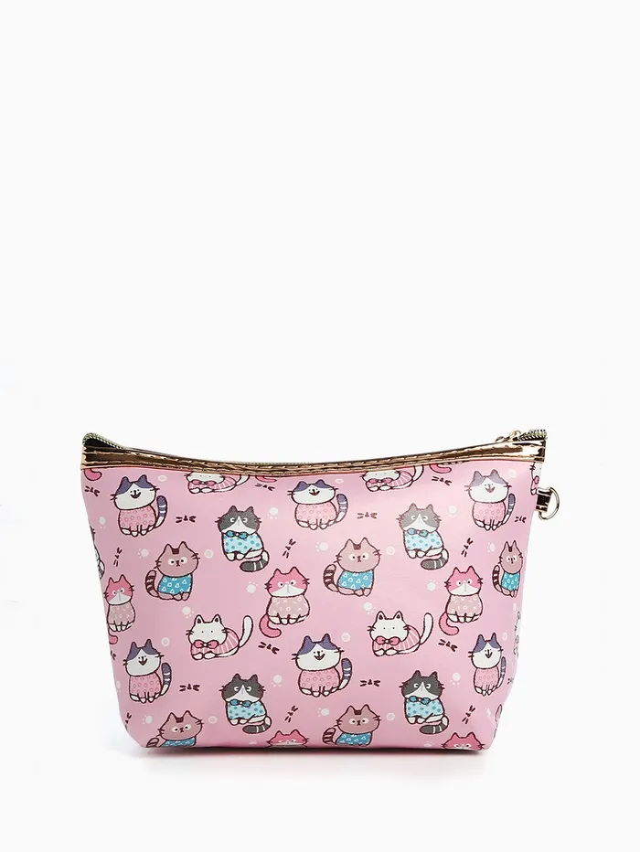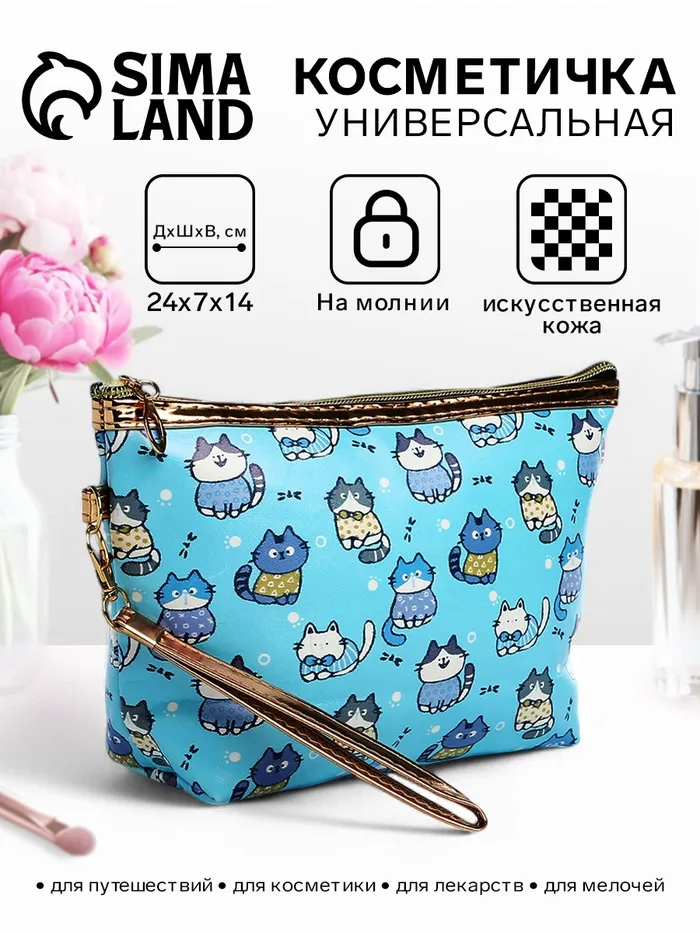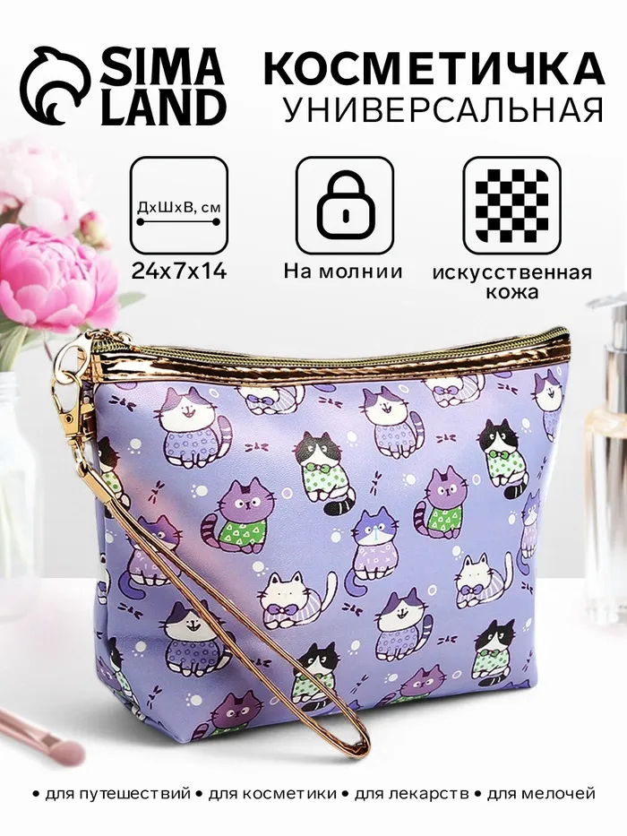 Косметичка простая на молнии, с ручкой, подкладом, с принтом, розовая — Характеристики