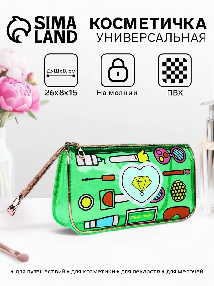 Косметичка-сумка на молнии для бассейна, большая, с ручками, с принтом, чёрная — Характеристики