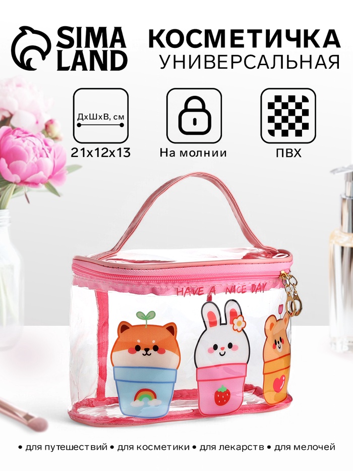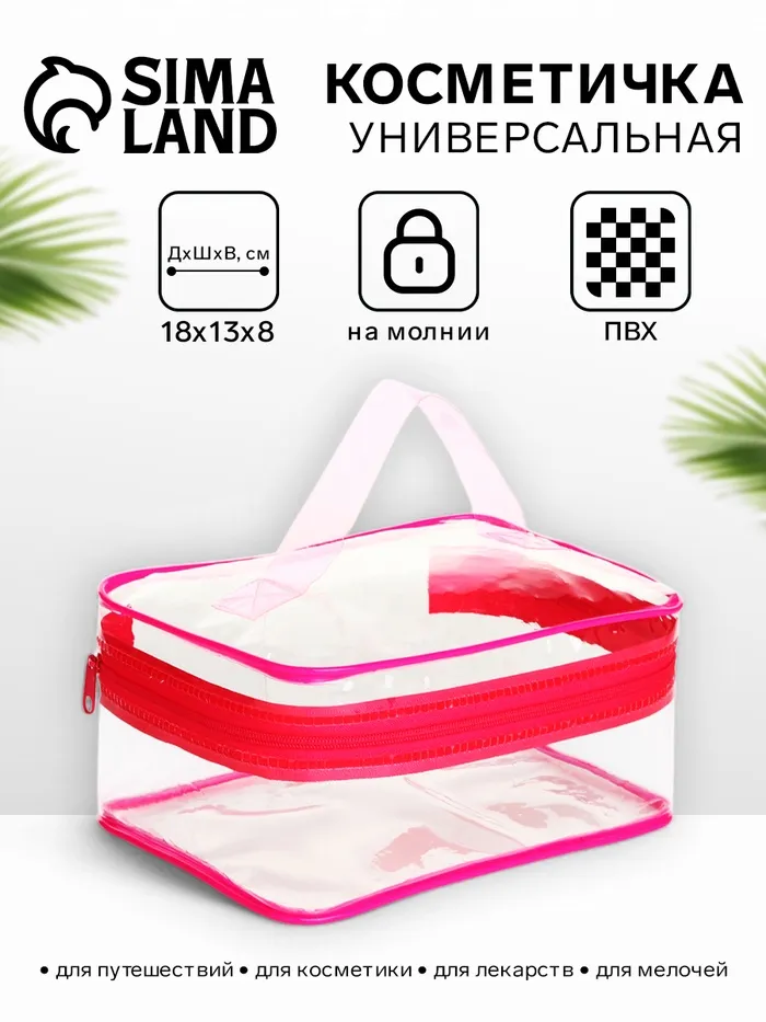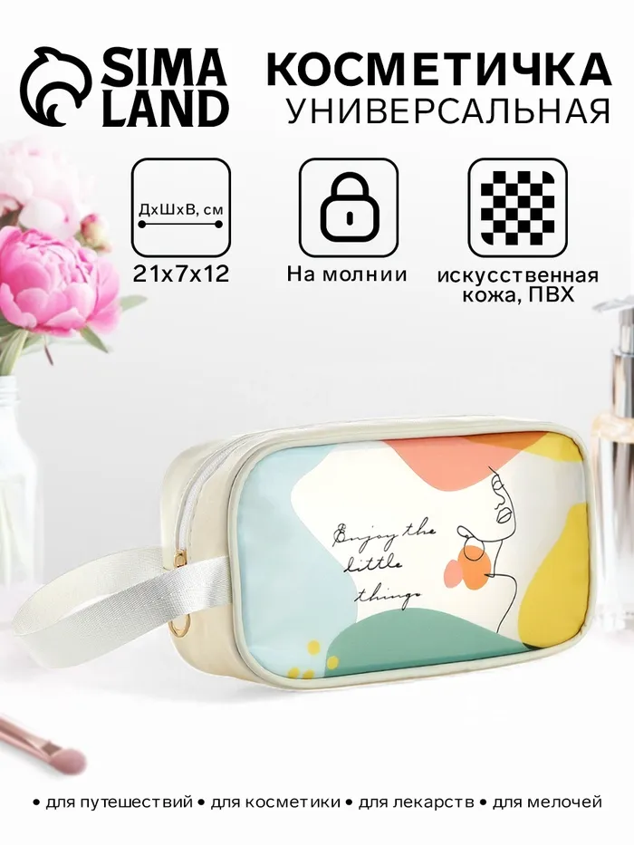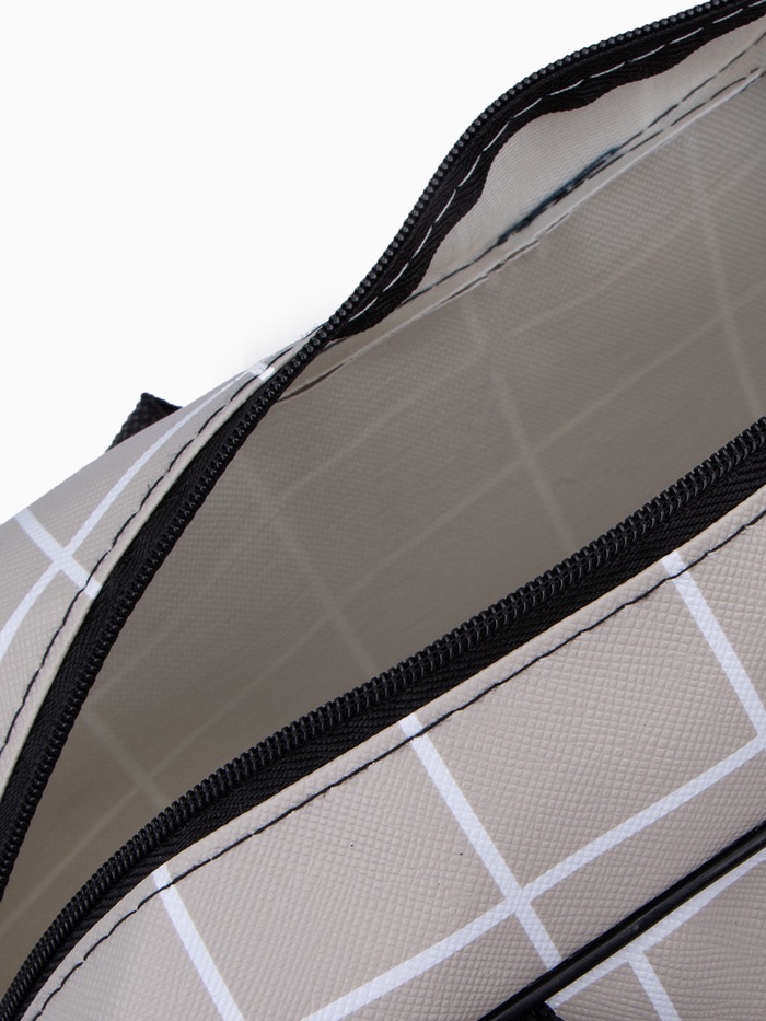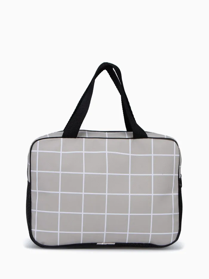 Косметичка-сумка на молнии, с ручками, с сеткой, большая, в клетку, бежевая — Характеристики