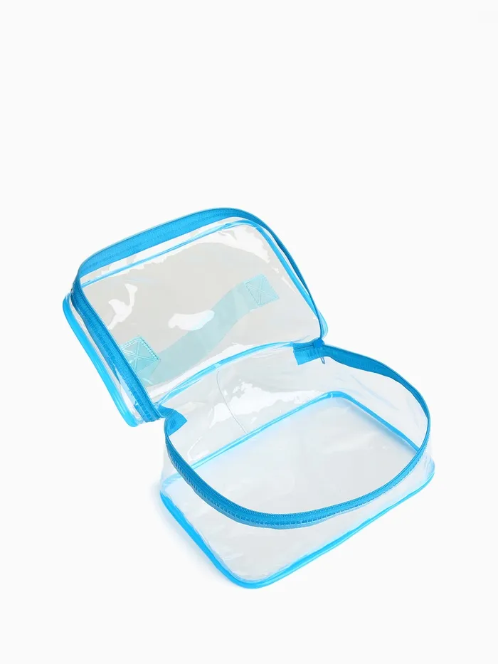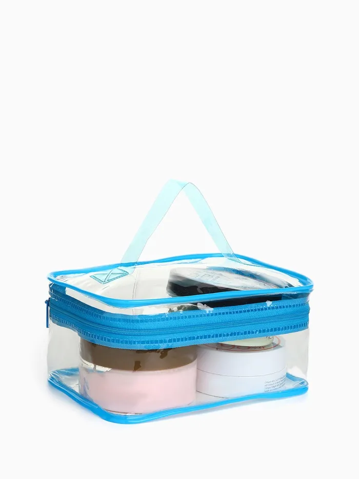 Косметичка-сундучок на молнии, маленькая, с ручкой, прозрачная, голубая — Характеристики