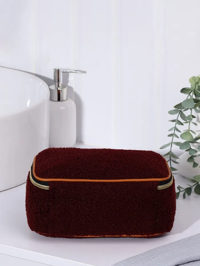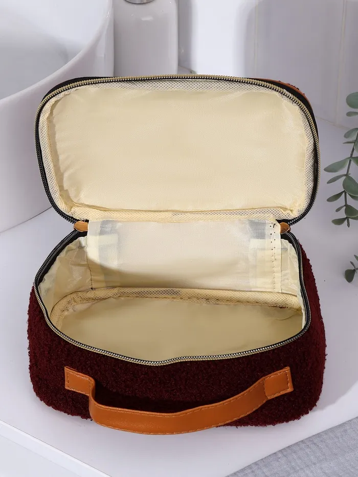 Косметичка-сундучок на молнии, на подкладке, плюшевая, с ручкой, бордовая — Характеристики