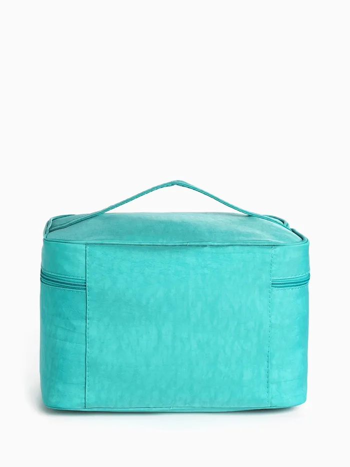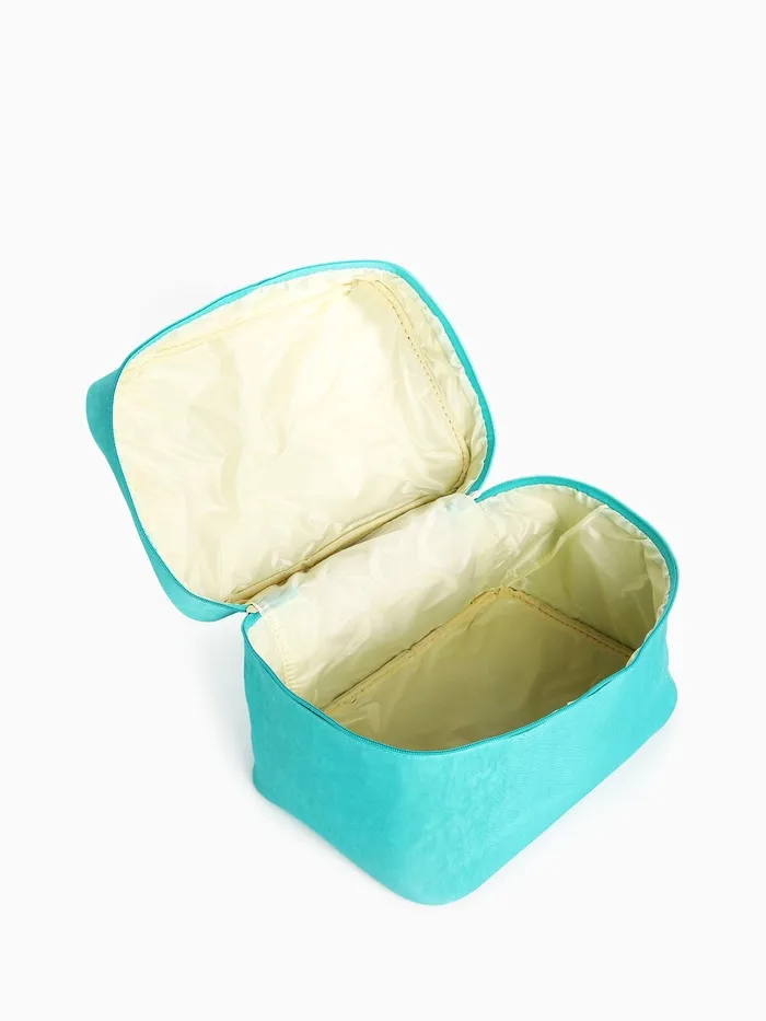 Косметичка-сундучок на молнии, на подкладке, с ручкой, бирюзовая — Характеристики
