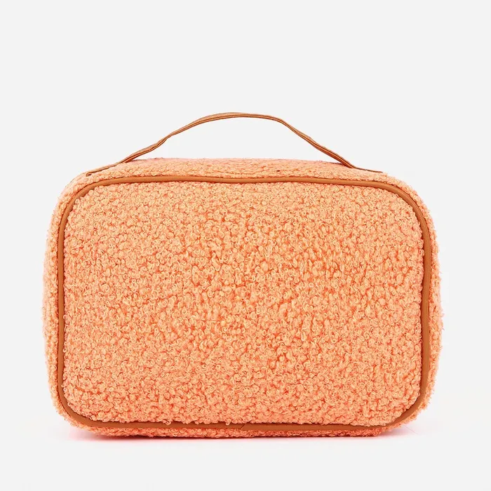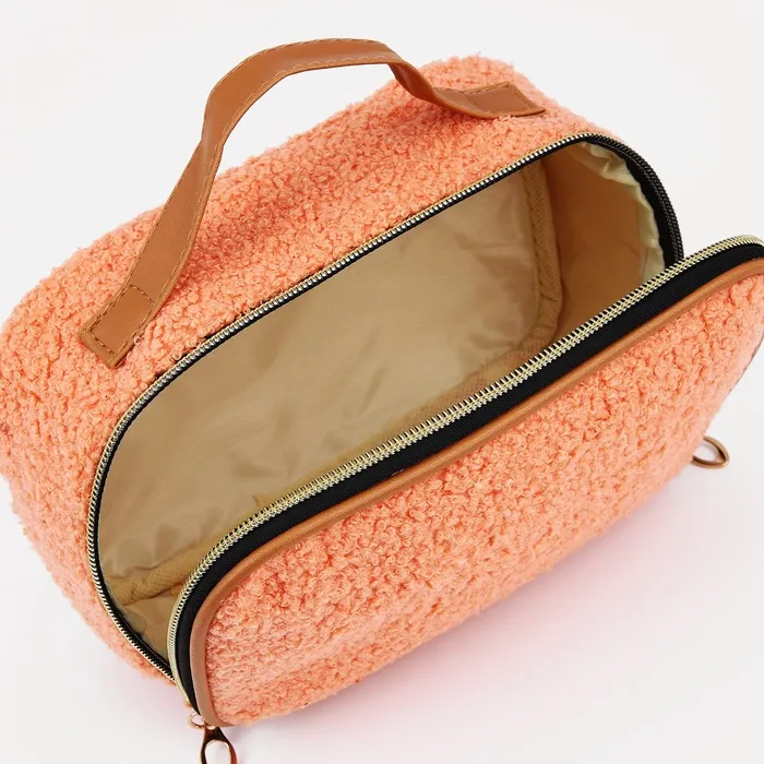 Косметичка-сундучок на молнии, плюшевая, с ручкой, персиковая — Характеристики