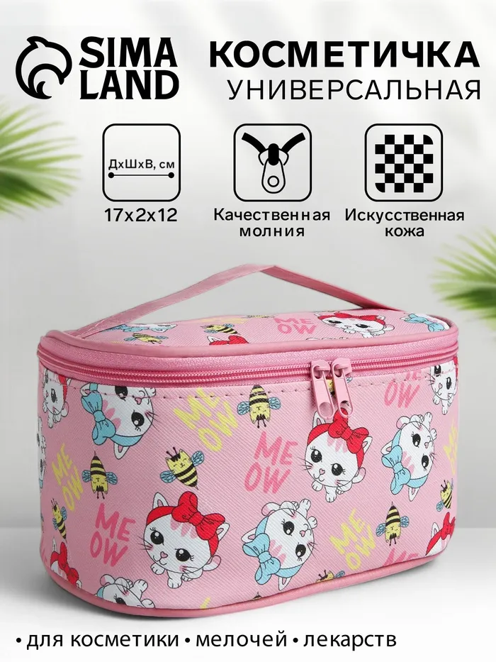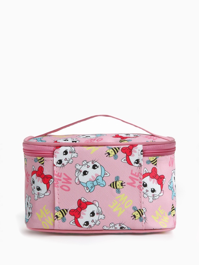 Косметичка-сундучок женская на молнии, с ручкой, розовая — Характеристики