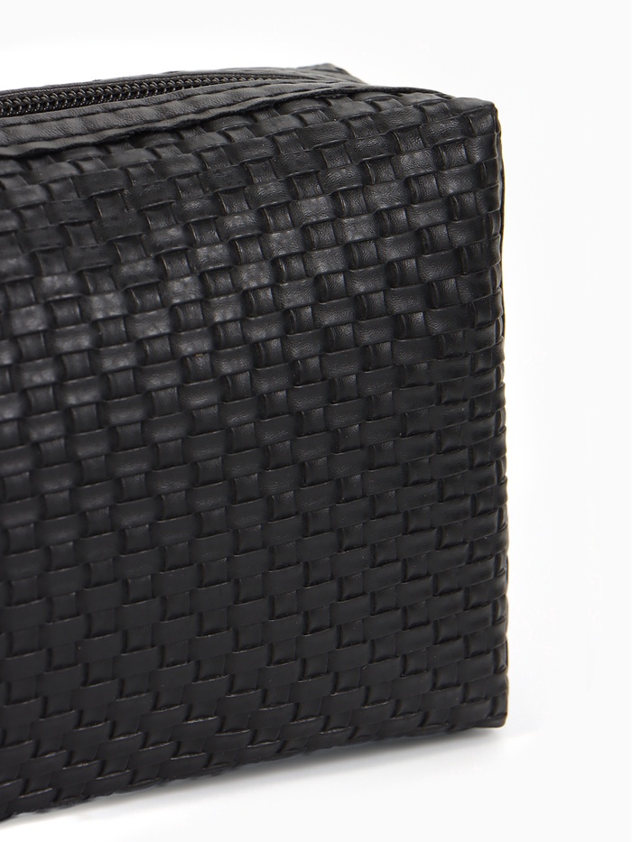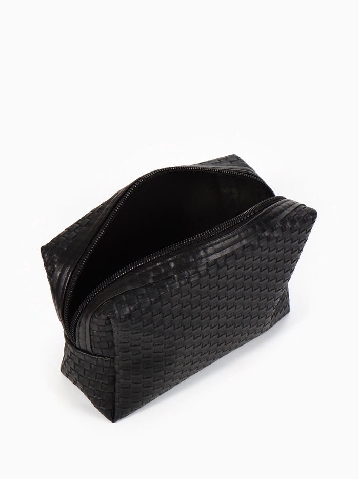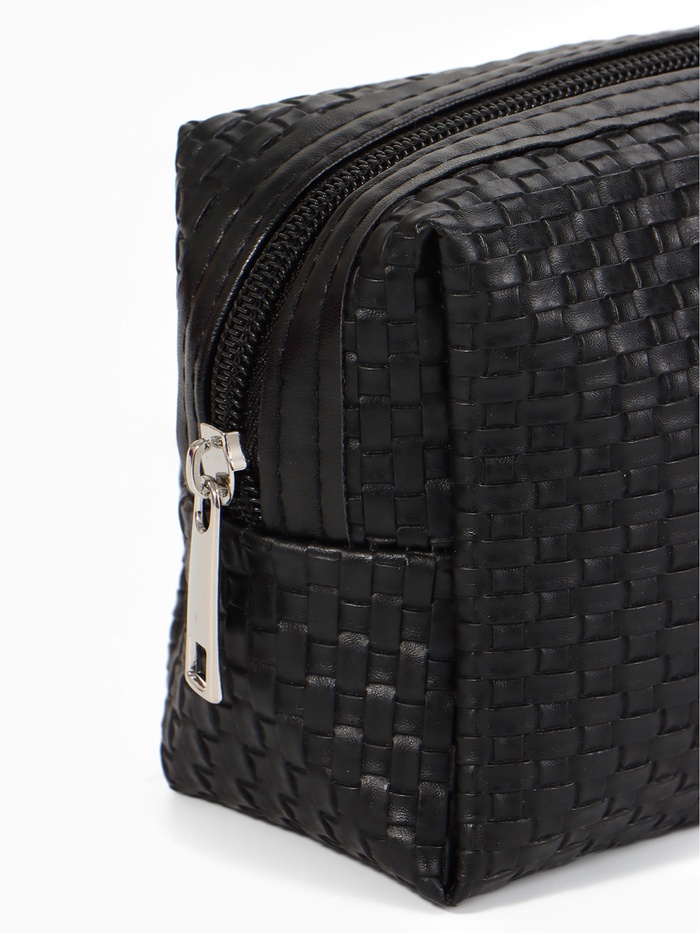 Эта компактная косметичка из искусственной кожи — практичный аксессуар для порядка в сумке. Её строгий чёрный цвет и универсальный дизайн подходят и мужчинам, и женщинам. Все мелочи — от гигиенической помады до ключей — будут надёжно храниться в одном закрывающемся на молнию отделении. Форма и размер созданы, чтобы легко помещаться даже в небольшую повседневную сумку или рюкзак, освобождая вас от поисков нужной вещи.