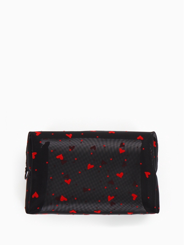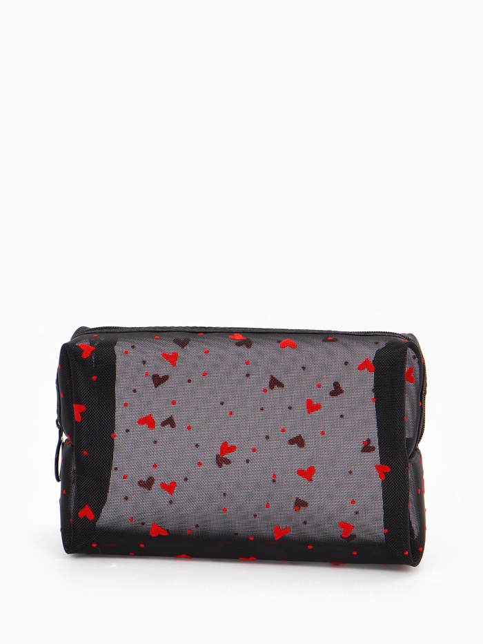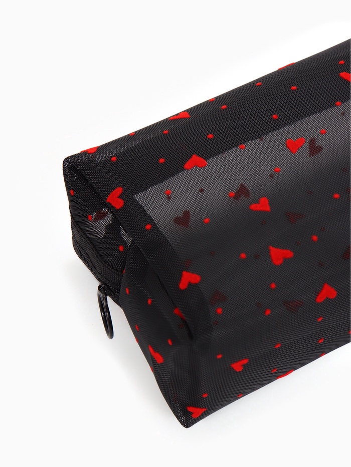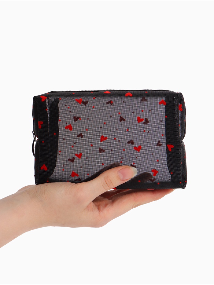 Косметичка женская HEARTS, с рисунком, сетка, на молнии, чёрная