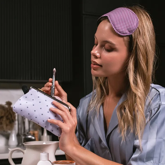 Нежная сиреневая косметичка с королевским принтом — элегантный аксессуар для хранения косметики и мелочей. Компактный размер и удобный фермуар делают её практичным выбором для повседневного использования. Принт «Корона» добавляет изысканности образу.