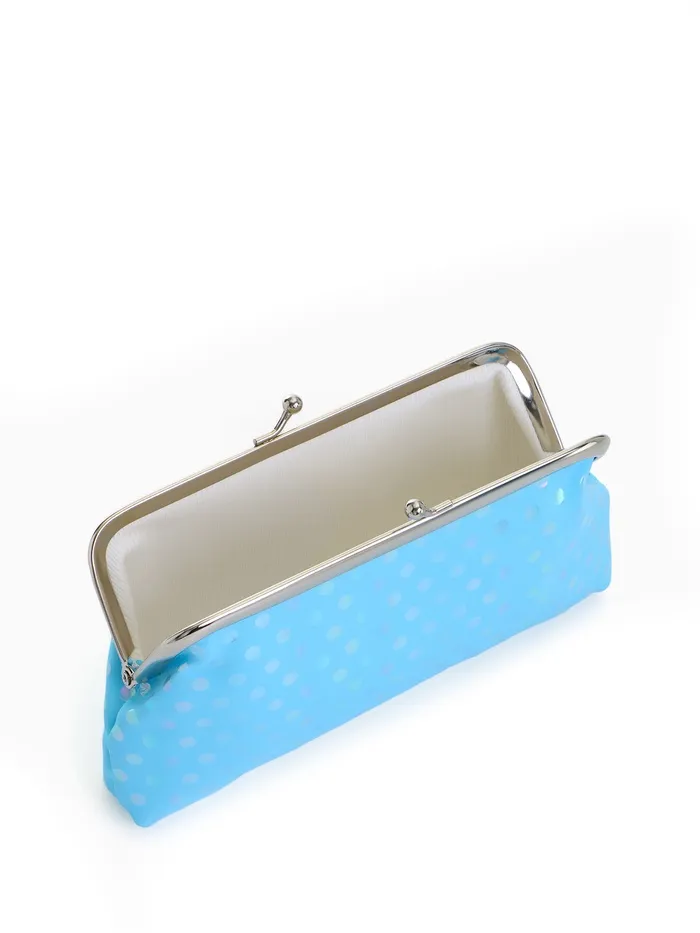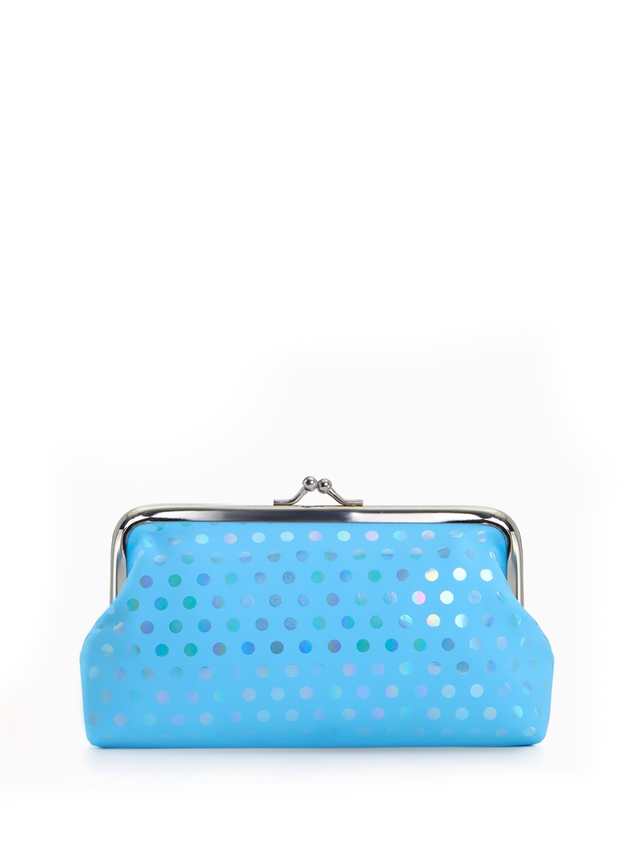 Косметичка женская на фермуаре, маленькая, с принтом «Перламутровый горох», голубая — Характеристики