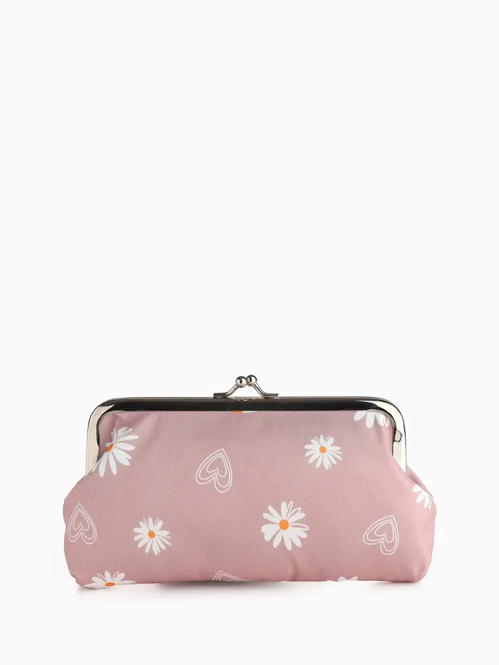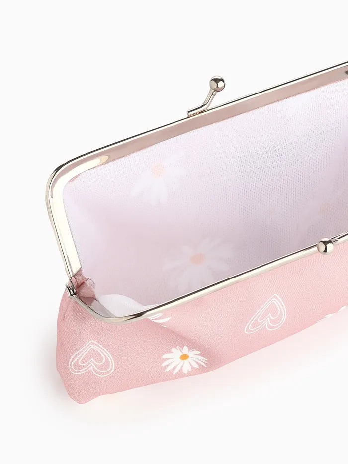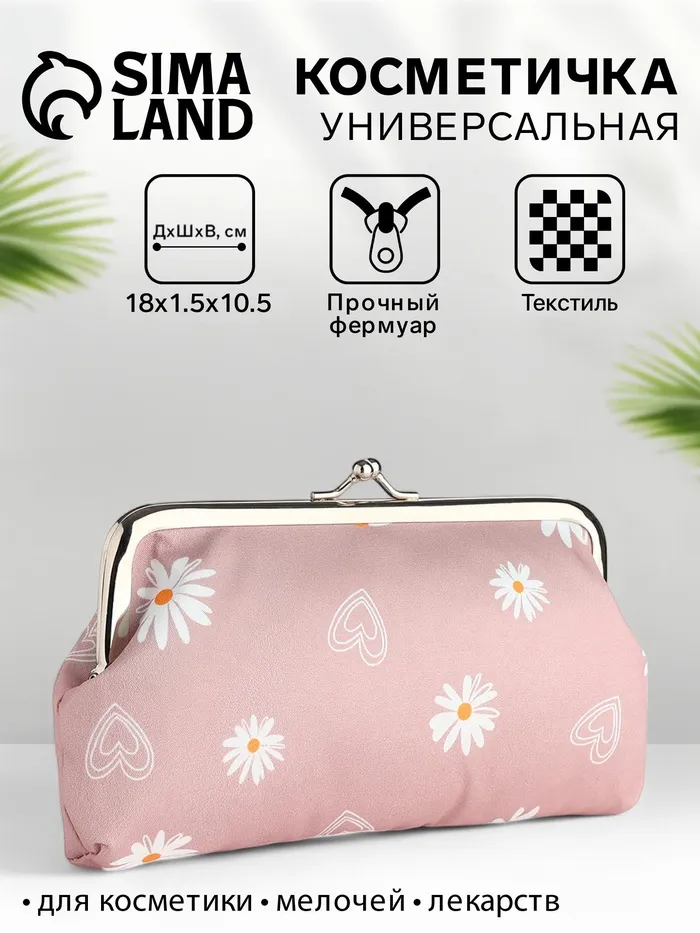 Косметичка женская на фермуаре, маленькая, с принтом «Ромашки», розовый — Характеристики