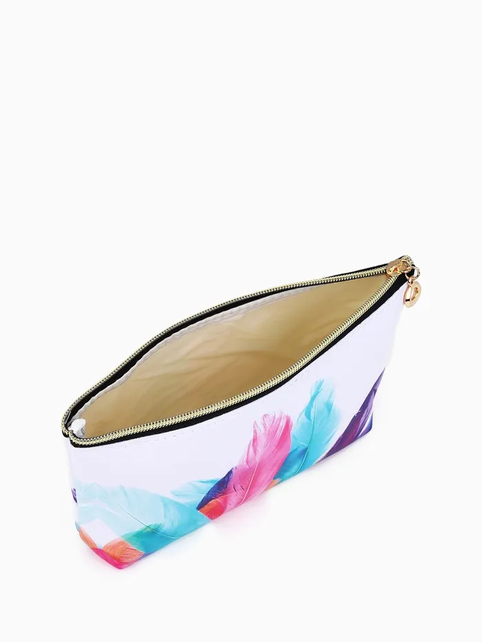 Косметичка женская на молнии, большая, с подкладом, с принтом, белая/разноцветная — Характеристики