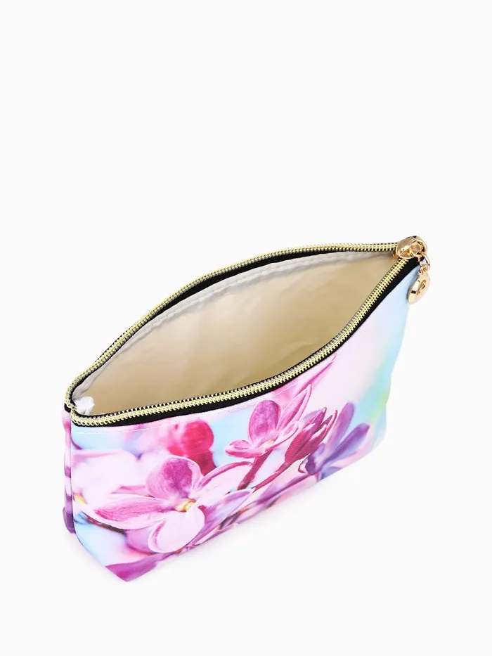 Косметичка женская на молнии, маленькая, с подкладом, с принтом, розовая/голубая — Характеристики