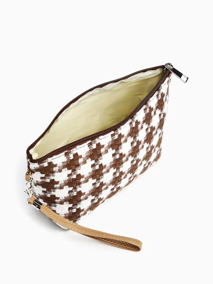 Косметичка женская на молнии, с подкладом, ручкой, белая/коричневая — Характеристики