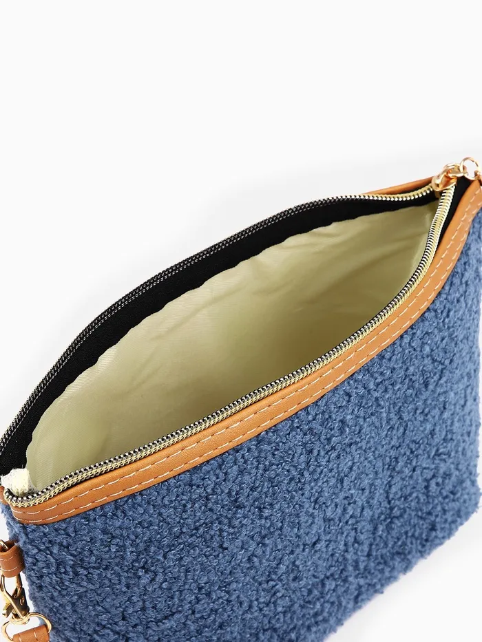 Косметичка женская на молнии, с подкладом, ручкой, плюшевая, синяя — Характеристики