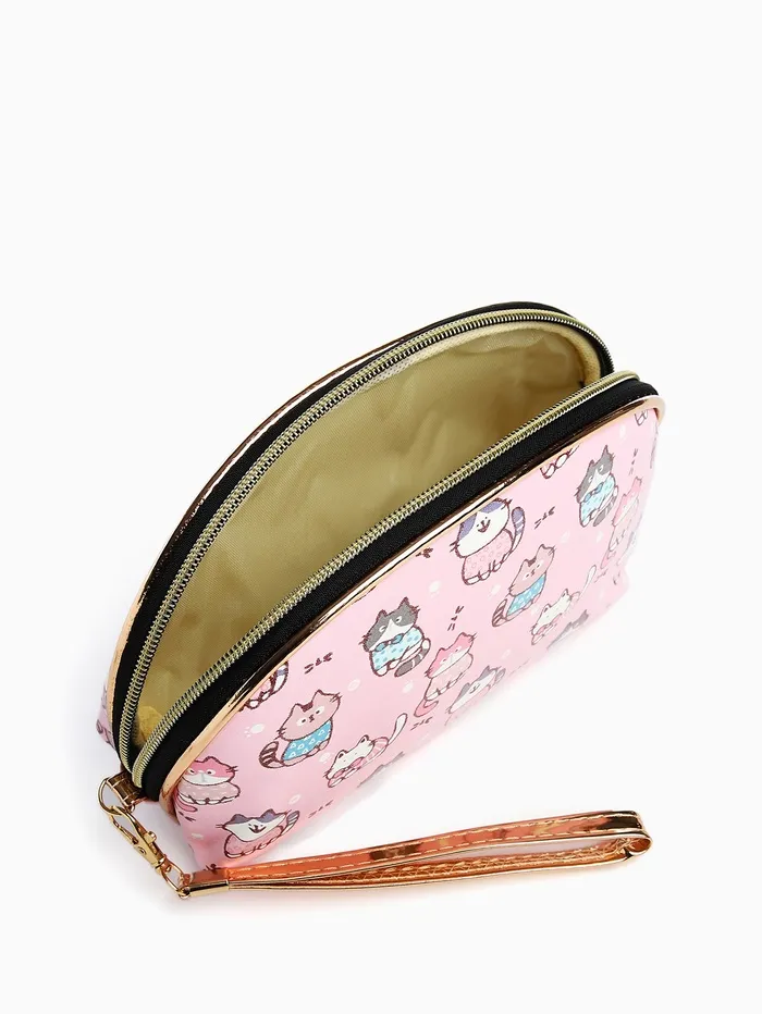 Косметичка женская на молнии, с подкладом, ручкой, с принтом, розовая — Характеристики
