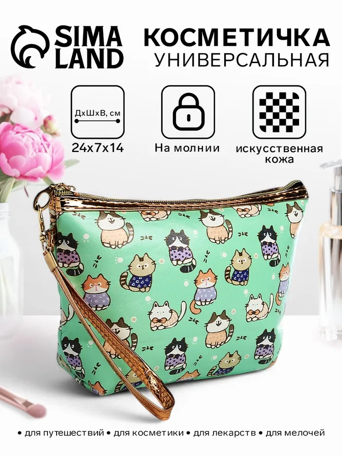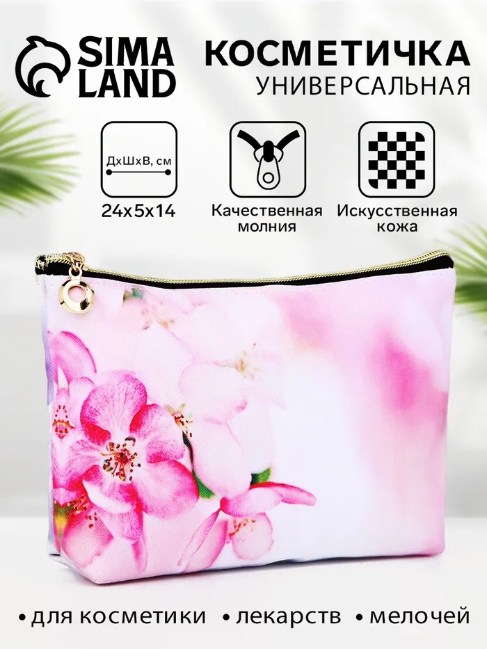 Косметичка женская на молнии, с подкладом, с принтом, белая/розовая — Характеристики