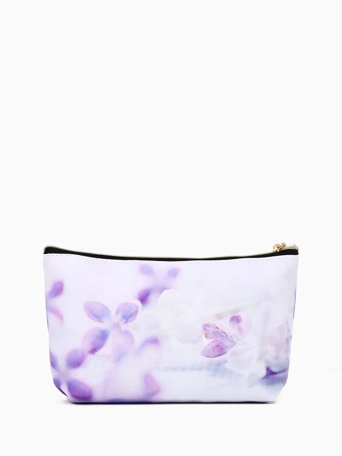 Косметичка женская на молнии, с подкладом, с принтом, розовая/сиреневая — Характеристики