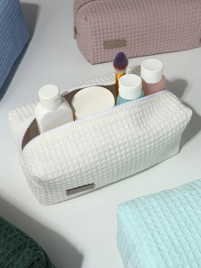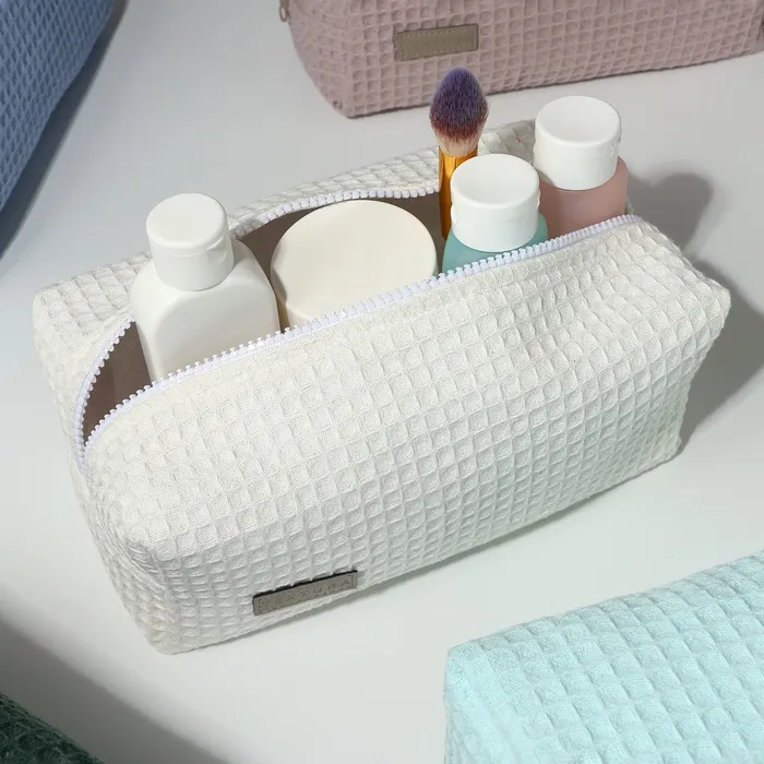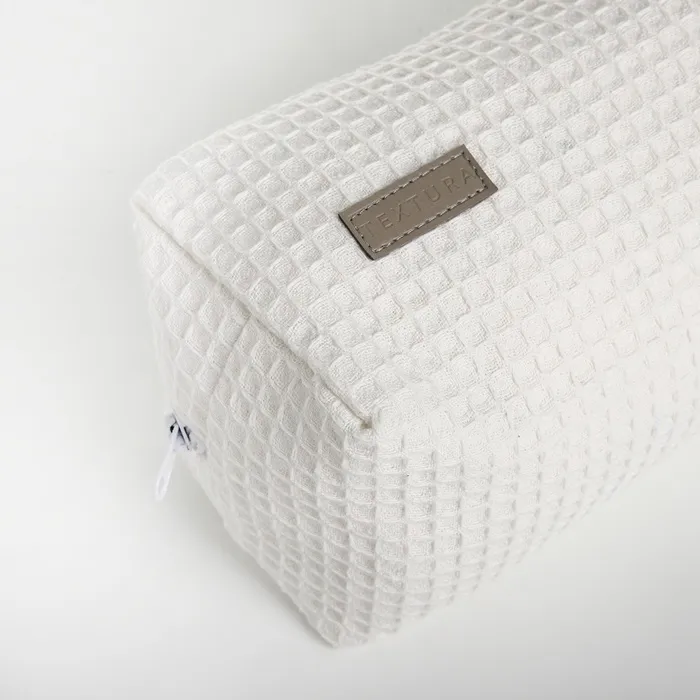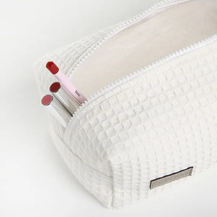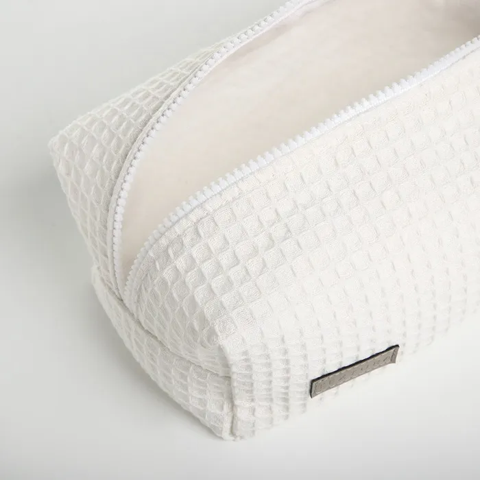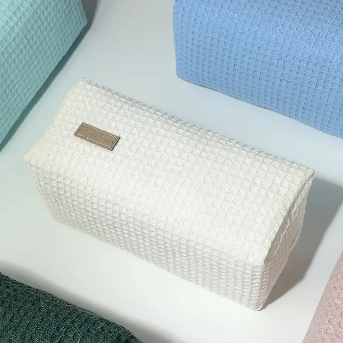 Большая женская косметичка из мягкого текстиля с вафельной фактурой — удобное решение для хранения косметики и аксессуаров. Классический белый цвет сочетается с любым стилем, а прочная молния обеспечивает сохранность содержимого. Объёмный формат подходит для повседневного использования и путешествий.