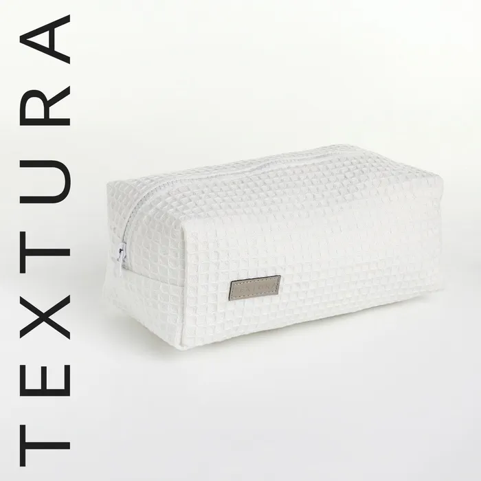 Косметичка женская на молнии TEXTURA, объёмная, большая, мягкая, вафельная текстура, белая — Характеристики