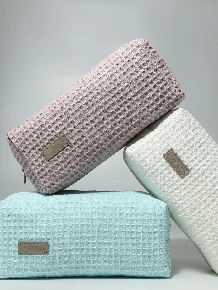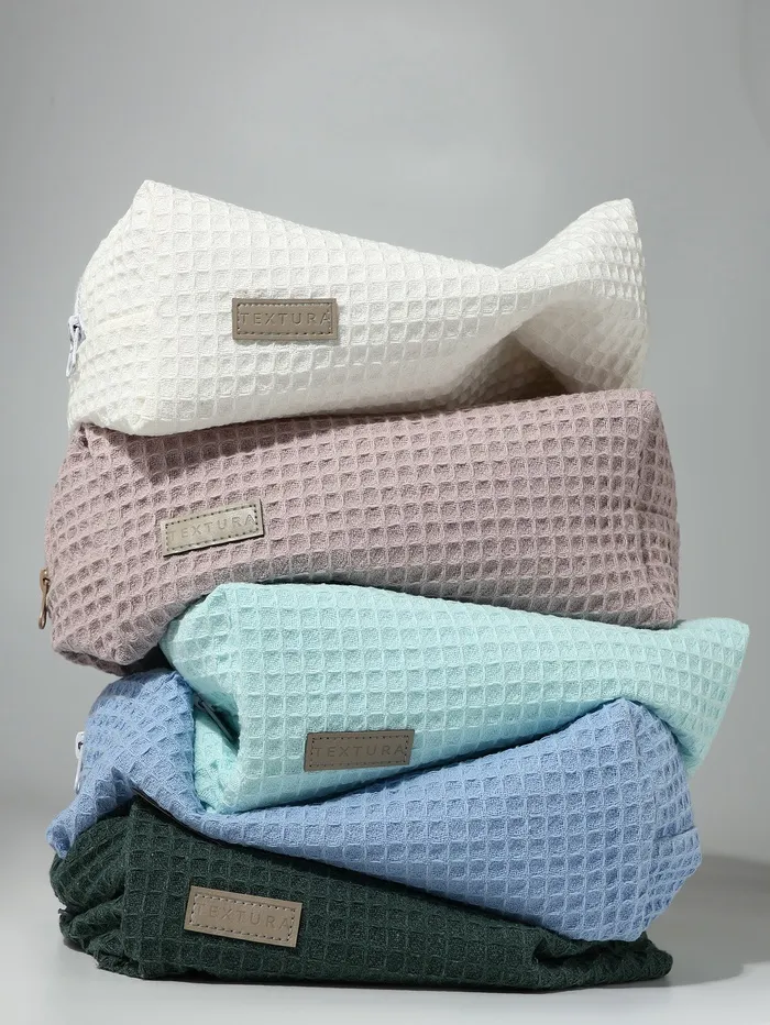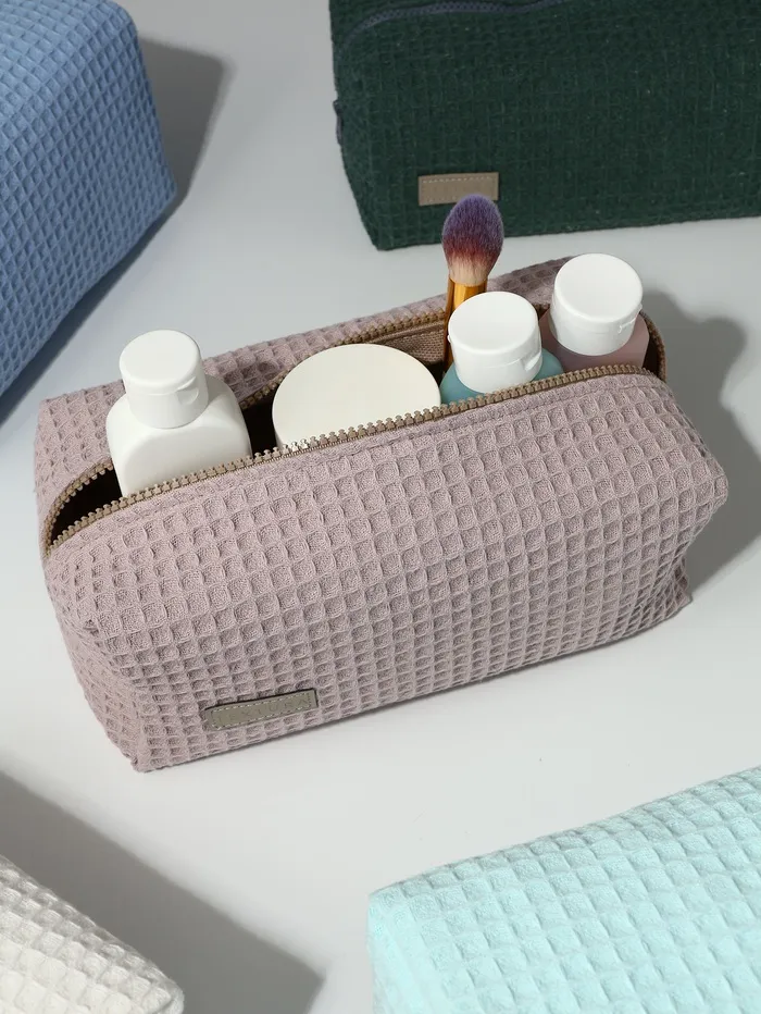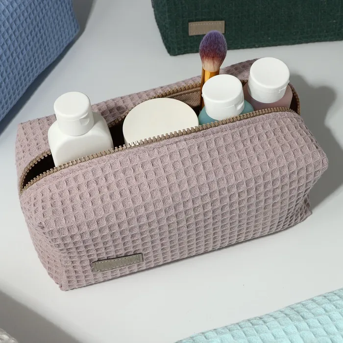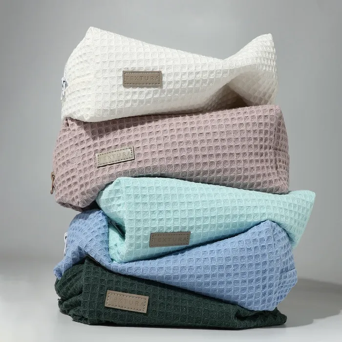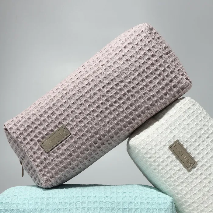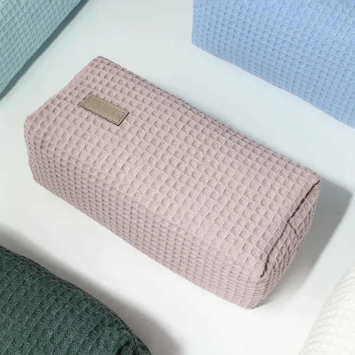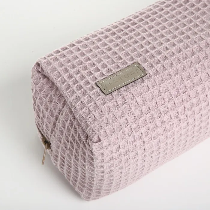 Объёмная косметичка в нежно-розовом оттенке с фактурной вафельной поверхностью — практичное решение для хранения косметических средств. Мягкий текстильный материал сохраняет форму, а прочная молния обеспечивает сохранность содержимого. Универсальный размер подходит для повседневного использования и путешествий.