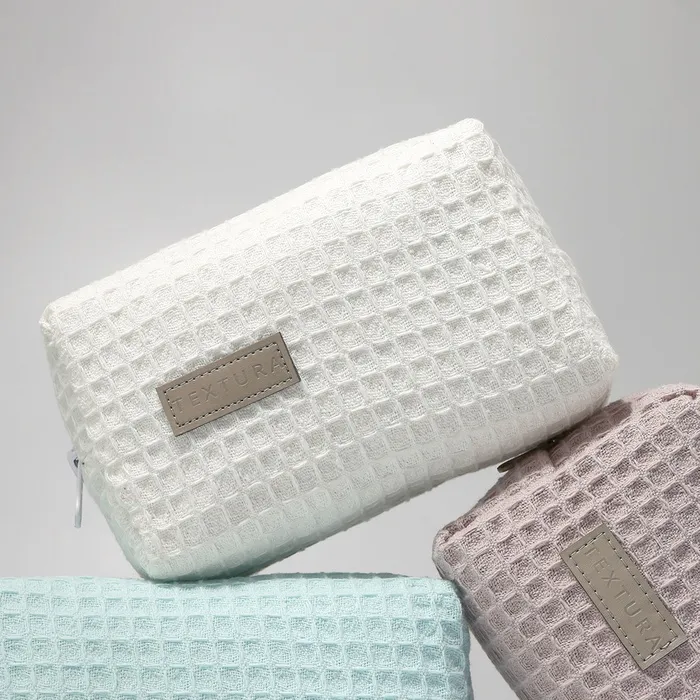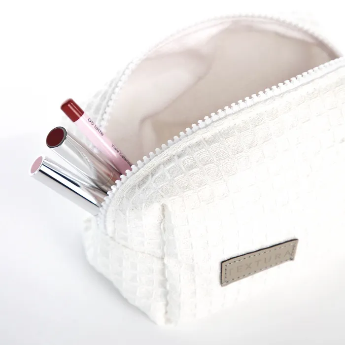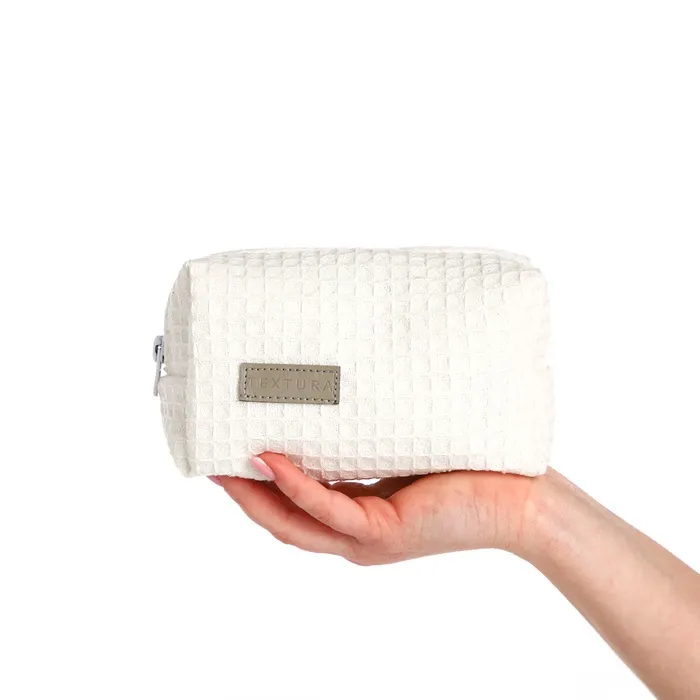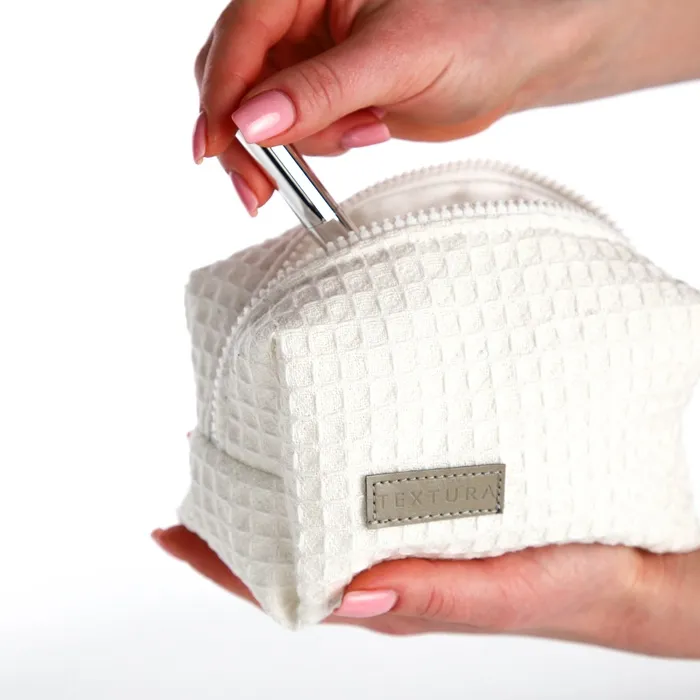 Косметичка женская на молнии TEXTURA, объёмная, маленькая, вафельная текстура, мягкая, белая — Характеристики