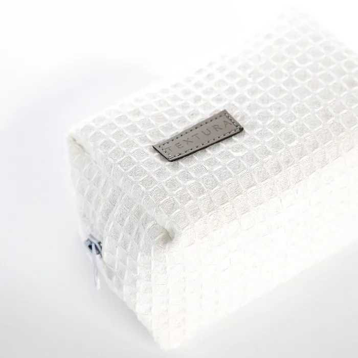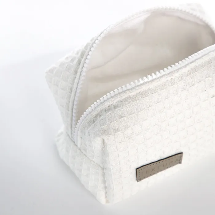 Косметичка женская на молнии TEXTURA, объёмная, маленькая, вафельная текстура, мягкая, белая