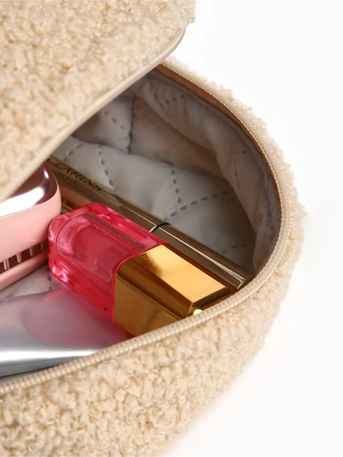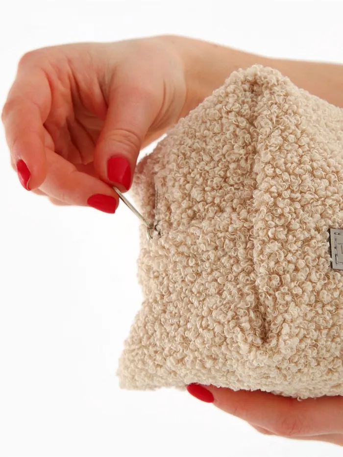 Косметичка женская на молнии TEXTURA, объёмная, плюшевая, бежевая — Характеристики