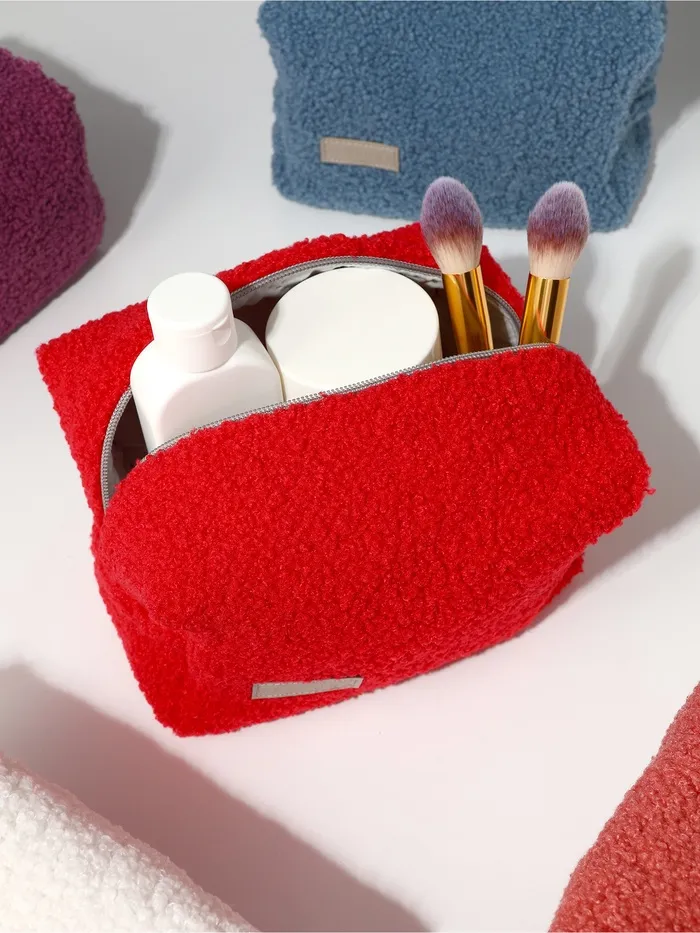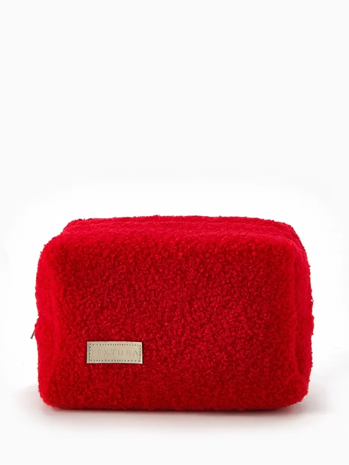 Косметичка женская на молнии TEXTURA, объёмная, плюшевая, красный — Характеристики